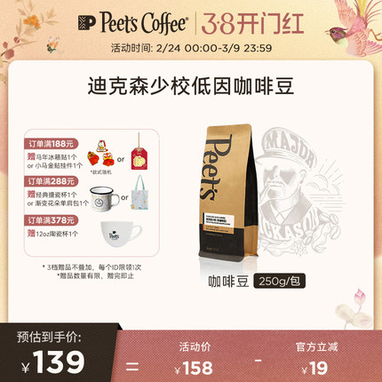 Peets皮爷低咖啡因迪克森少校咖啡豆阿拉比卡深烘香醇黑咖啡250g