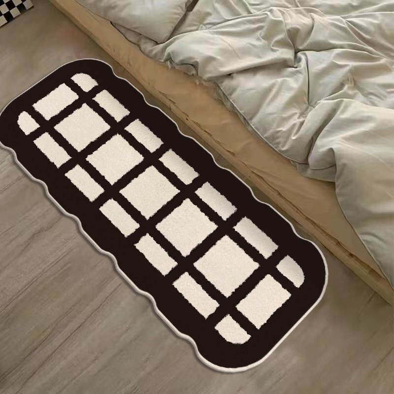 西域猫黑白格子卧室床边毯客厅茶几衣帽间飘窗地垫房间床前小地毯