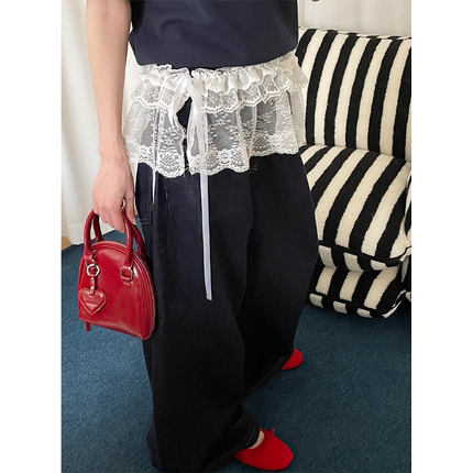 法式甜美蕾丝花边罩裙女2025年春夏新款木耳边短款屁帘叠穿半身裙