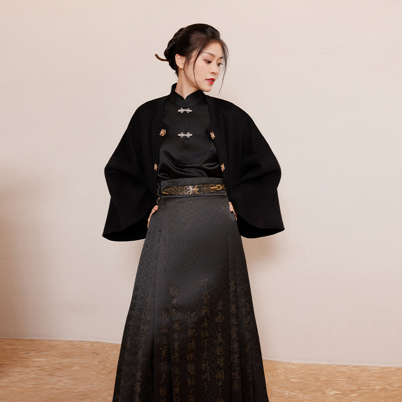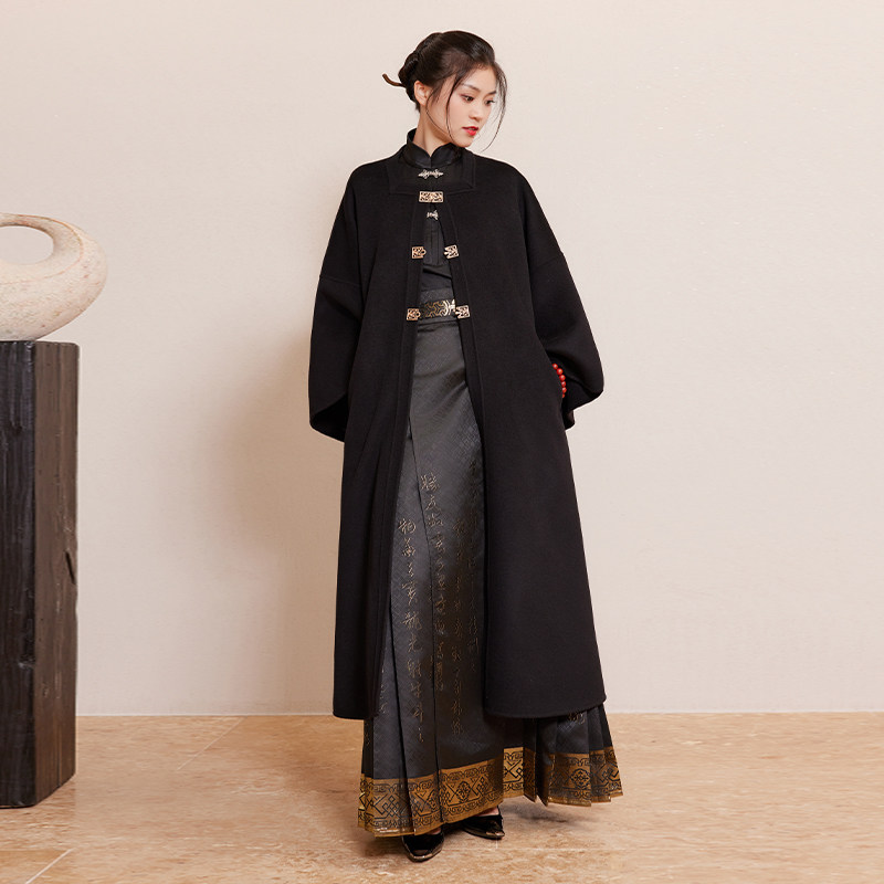 听旬滕王阁序秋冬汉服女改良原创国风双面呢纯羊毛大衣中长款外套