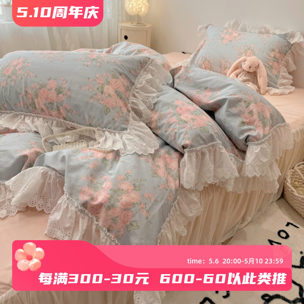 仙女款荷叶边纯棉四件套公主风少女全棉被套床裙款1.S5m1.8米床品