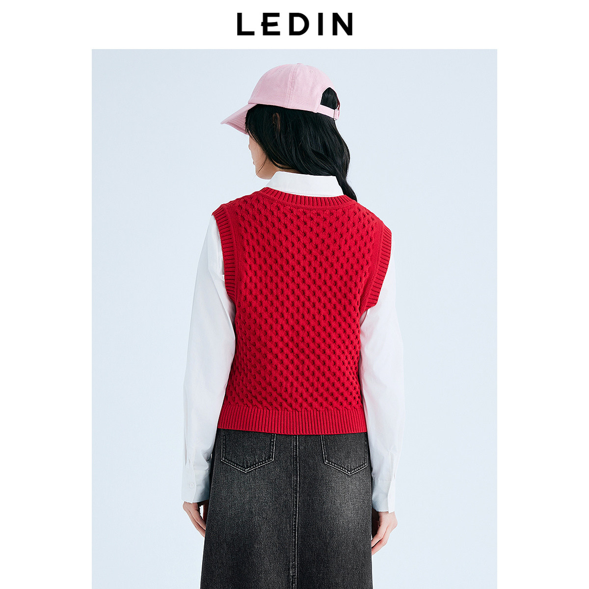【商场同款】乐町菱格圆领线背心秋冬圣诞氛围感针织衫C2EFF1323*