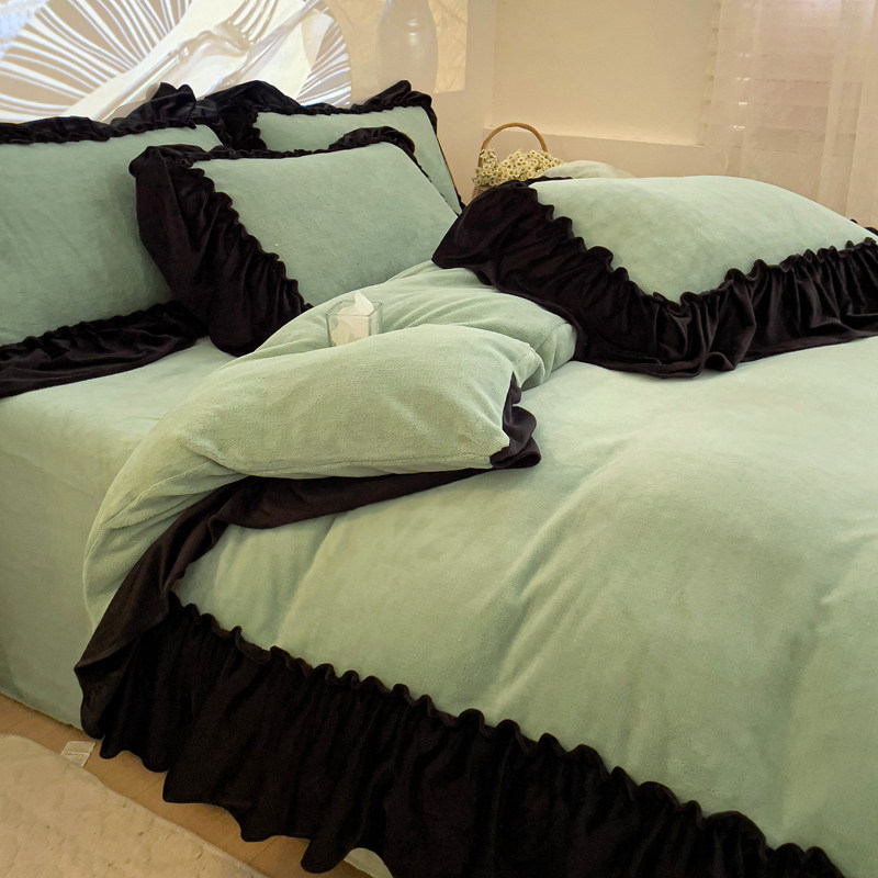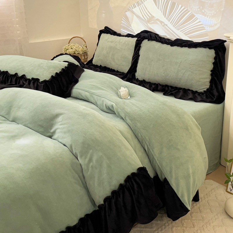 韩式风双面绒冬季加厚保暖床品四件套珊瑚绒牛奶绒绿色暖冬被套