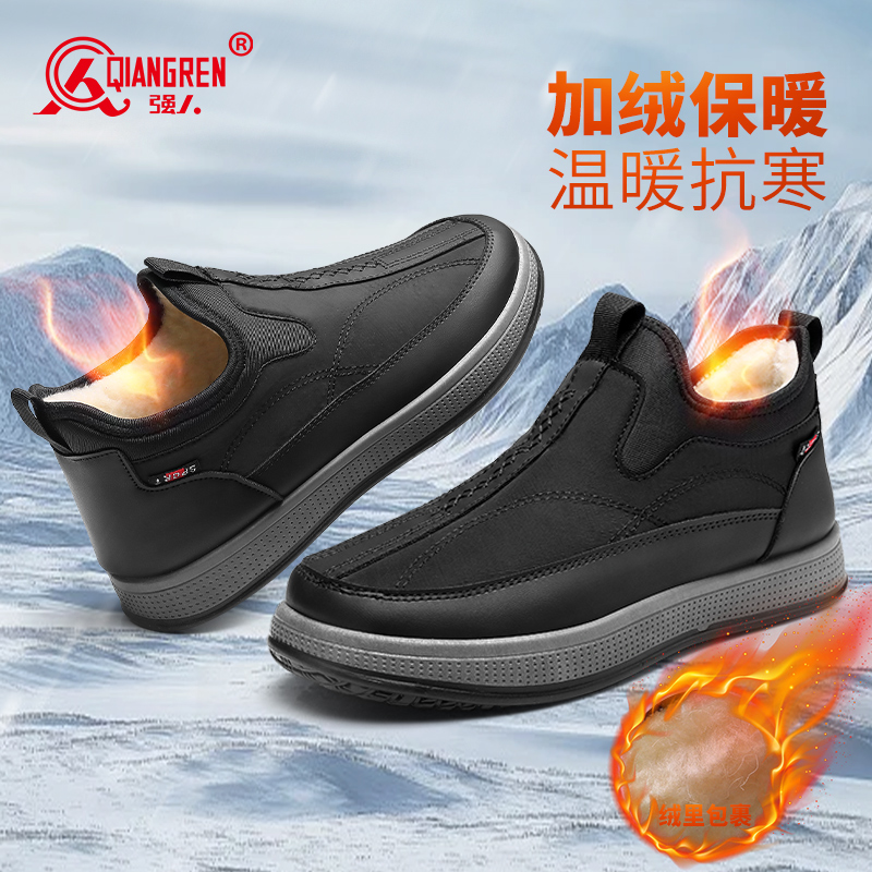 强人3515男鞋冬季老北京布鞋男士加绒保暖棉鞋男休闲中老年爸爸鞋