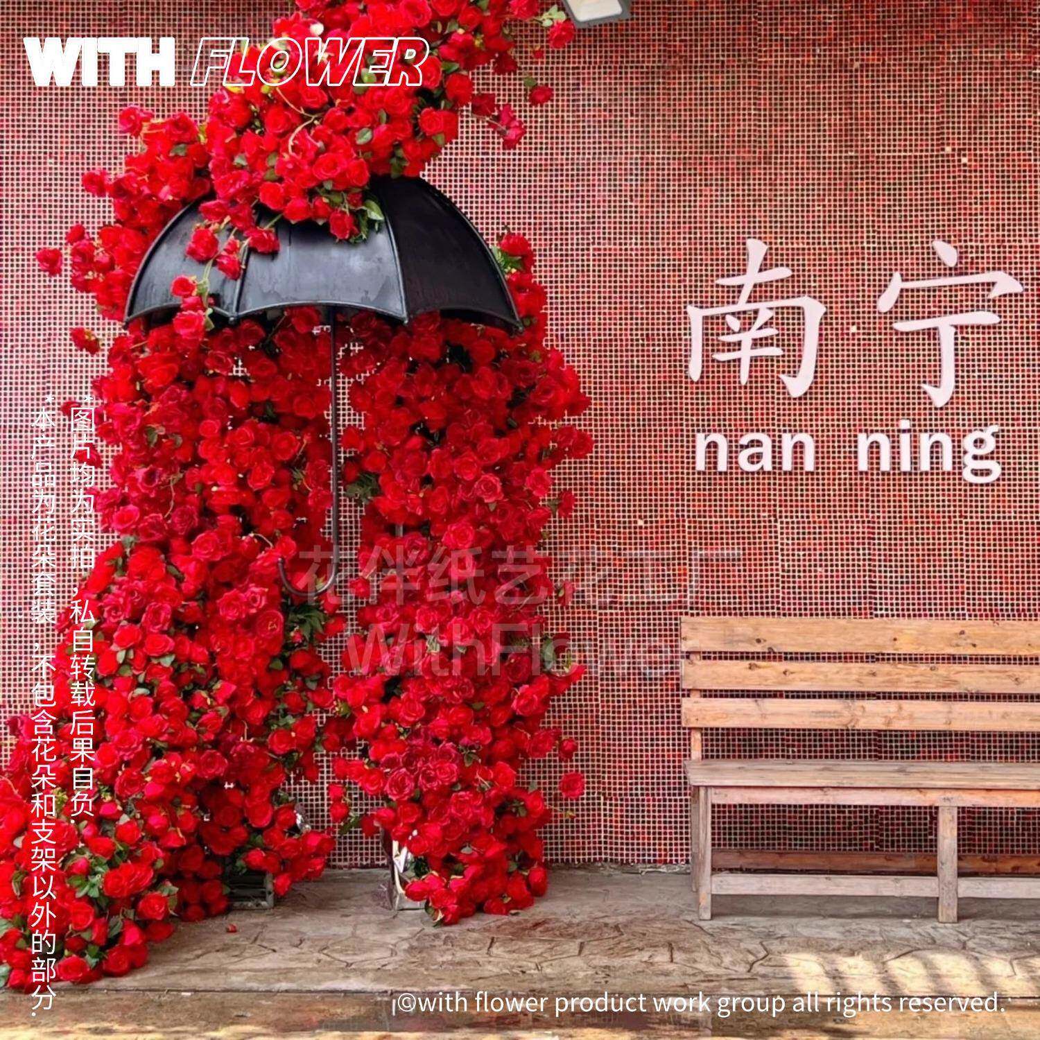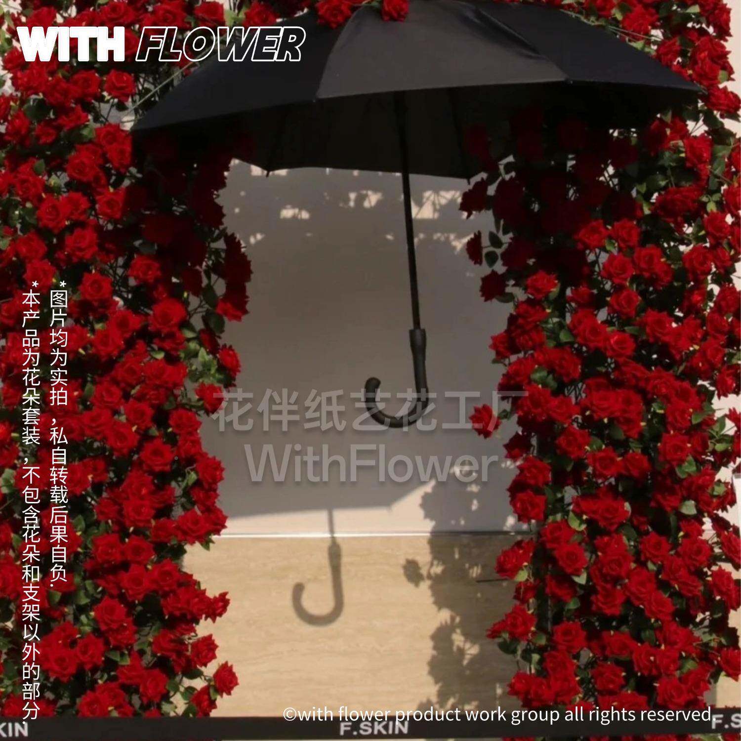玫瑰A1花瀑布饰雨伞型商场摆景区仿真花装情人节网红打卡大美陈件
