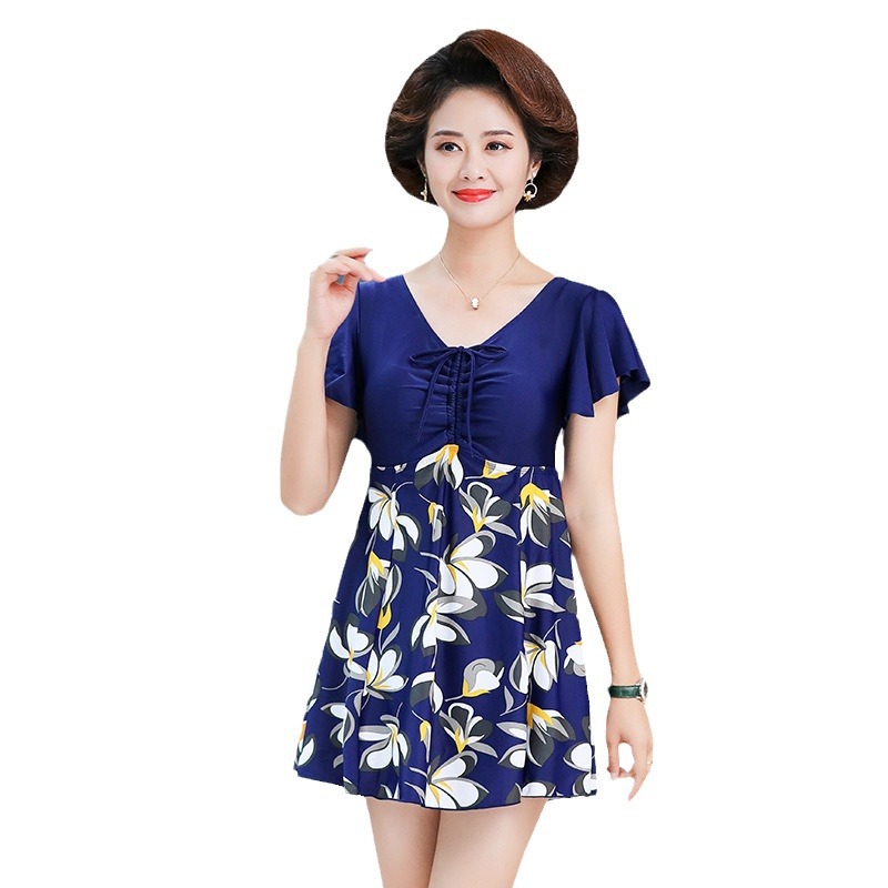 中老年泳衣女加肥加大码裙式分体平角裤宽松保守妈妈泳装