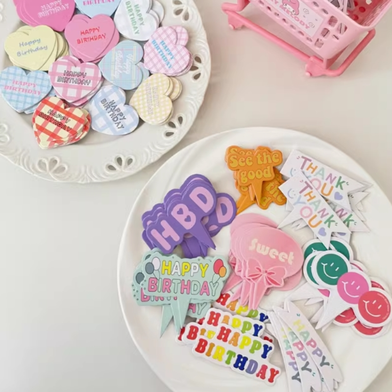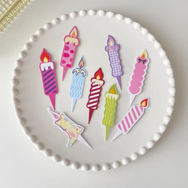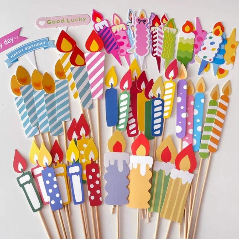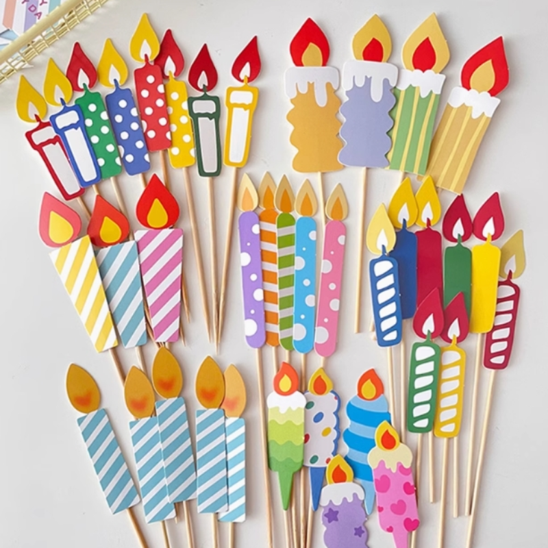 网红ins风纸卡蜡烛蛋糕装饰插牌 彩色卡通创意生日蜡烛火苗小插件