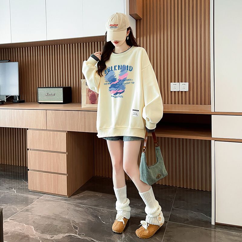 纯棉今年流行的漂亮新爆款无帽圆领上衣时尚洋气初高中学生卫衣女