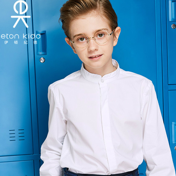 伊顿纪德正品校服男童长袖衬衣春秋新款立领中大童儿童衬衫15C155