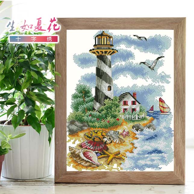 夏花法国DMC线R线十字绣套件正品纯棉风景印花丝蒂奇STC80902灯塔