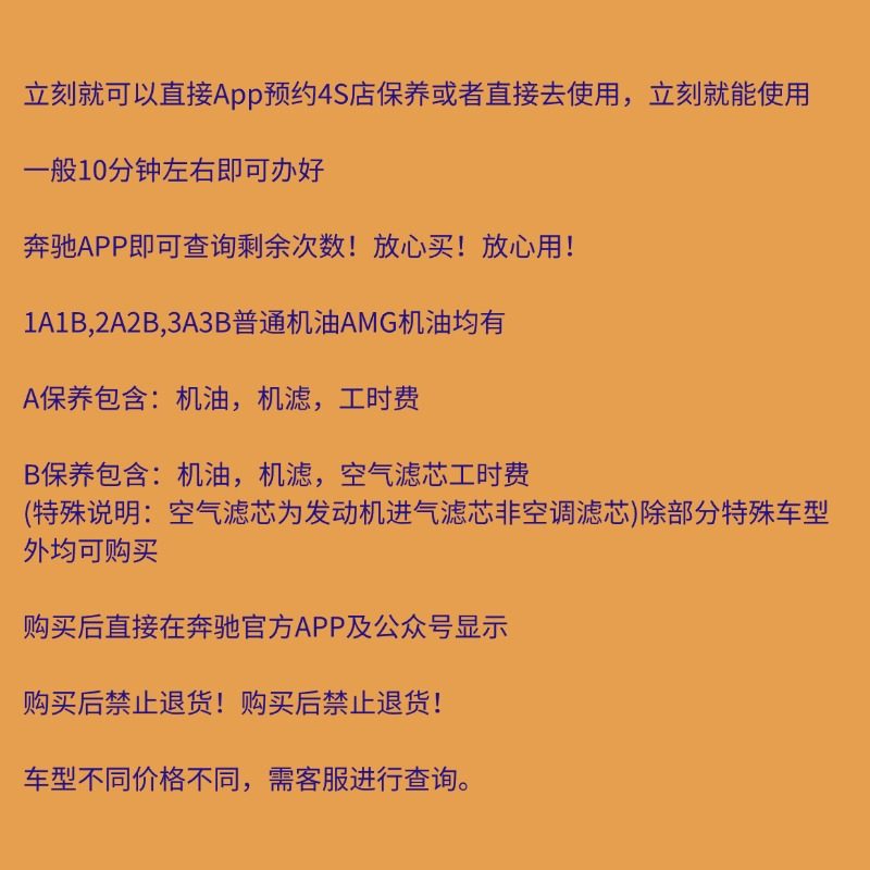 奔驰全国原厂保养套餐延保 奔驰4S通用 奔驰A/B保养套餐即买即用