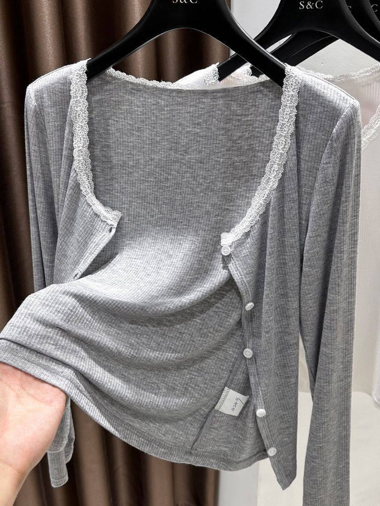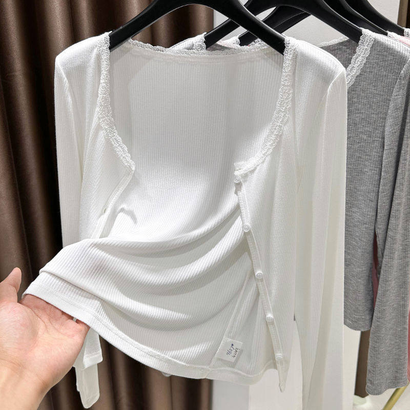 大码莫代尔披肩防晒开衫女裝胖mm夏季外搭蕾丝花边长袖薄款短外套