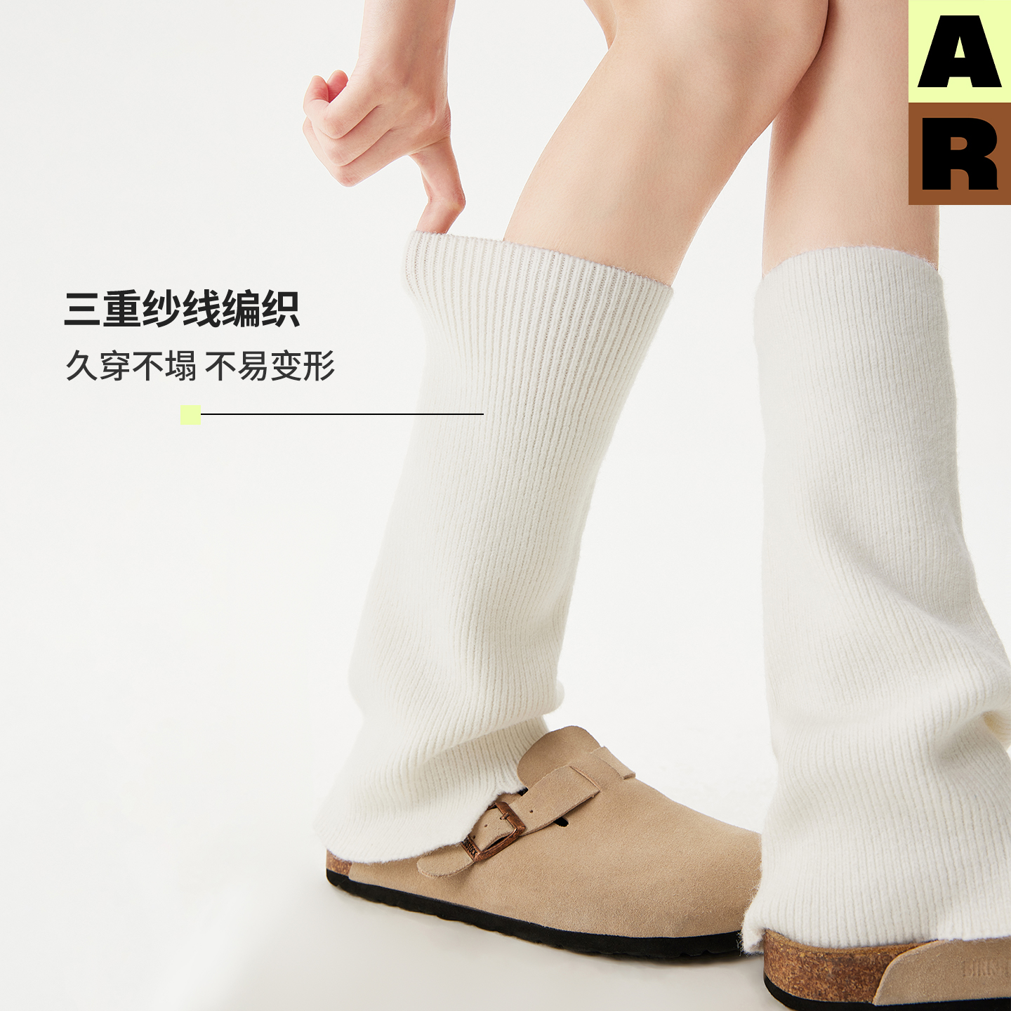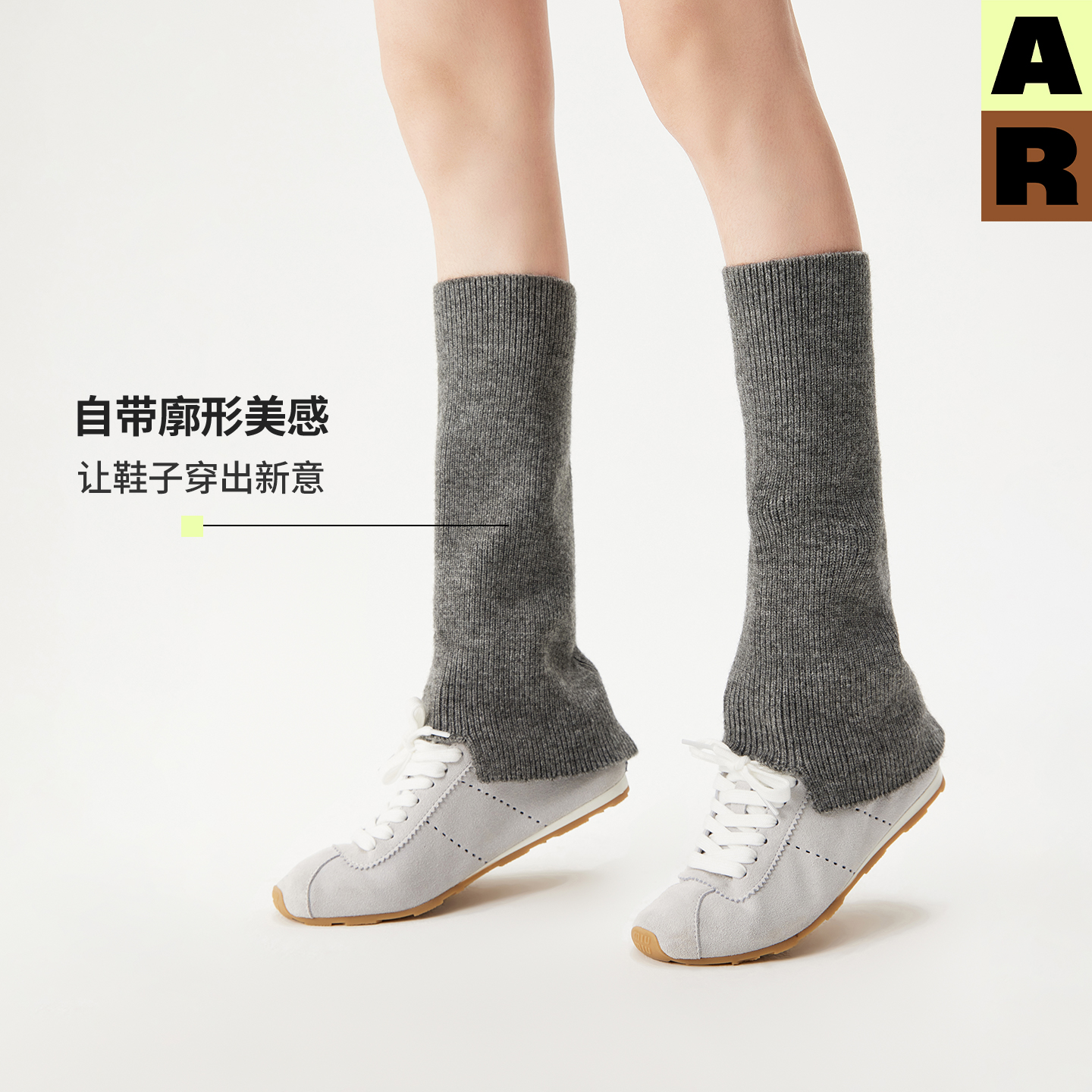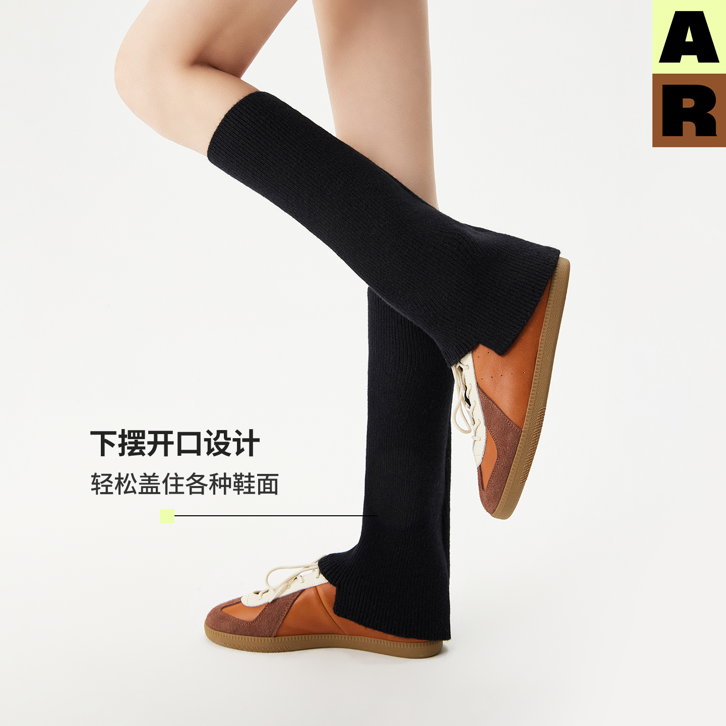 AR梯形开口护腿袜套灰色护膝中筒袜腿套2025保暖秋冬搭靴子女