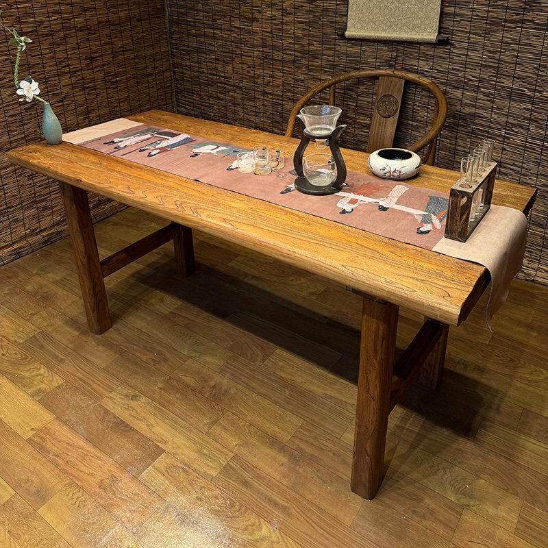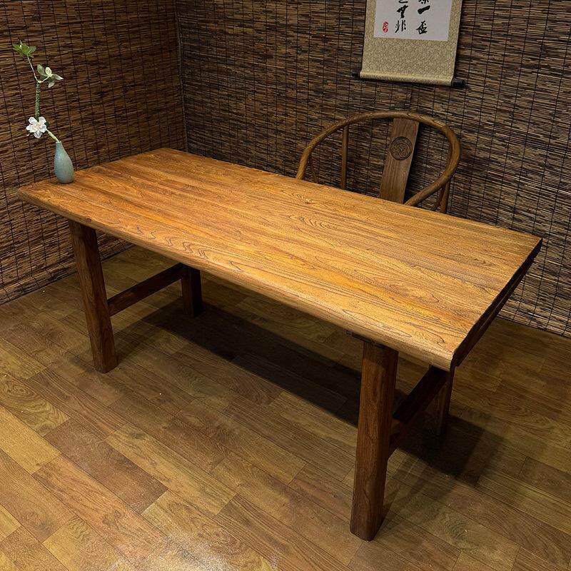老榆木实木茶桌电脑桌餐桌覆古长桌阳台桌书桌民宿饭店原木吧台桌