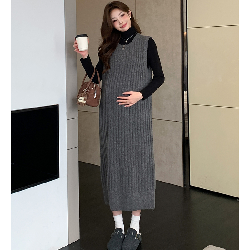 孕妇连衣裙套装秋冬2025新款藏蓝色孕妈针织背心裙打底毛衣两件套