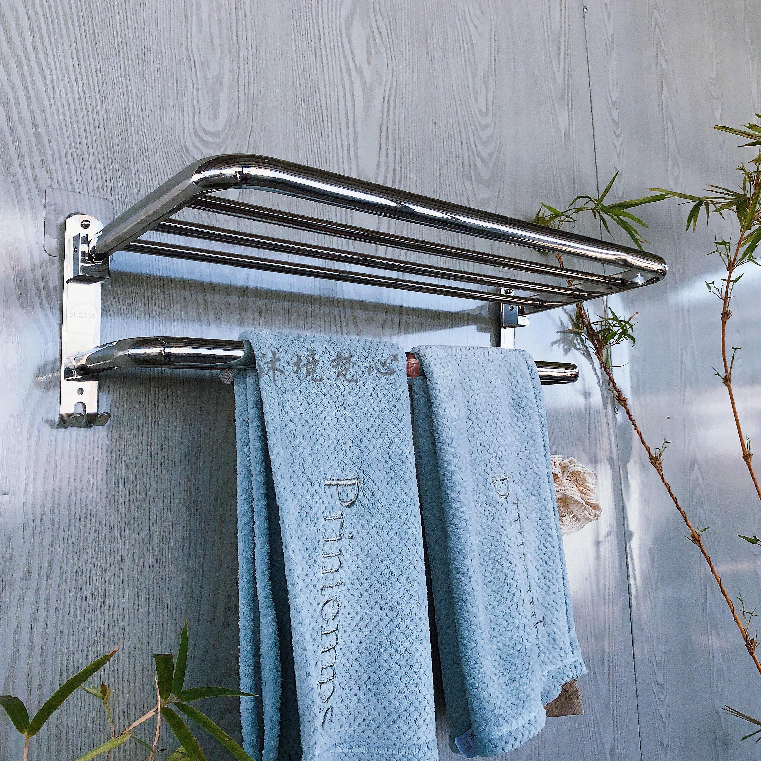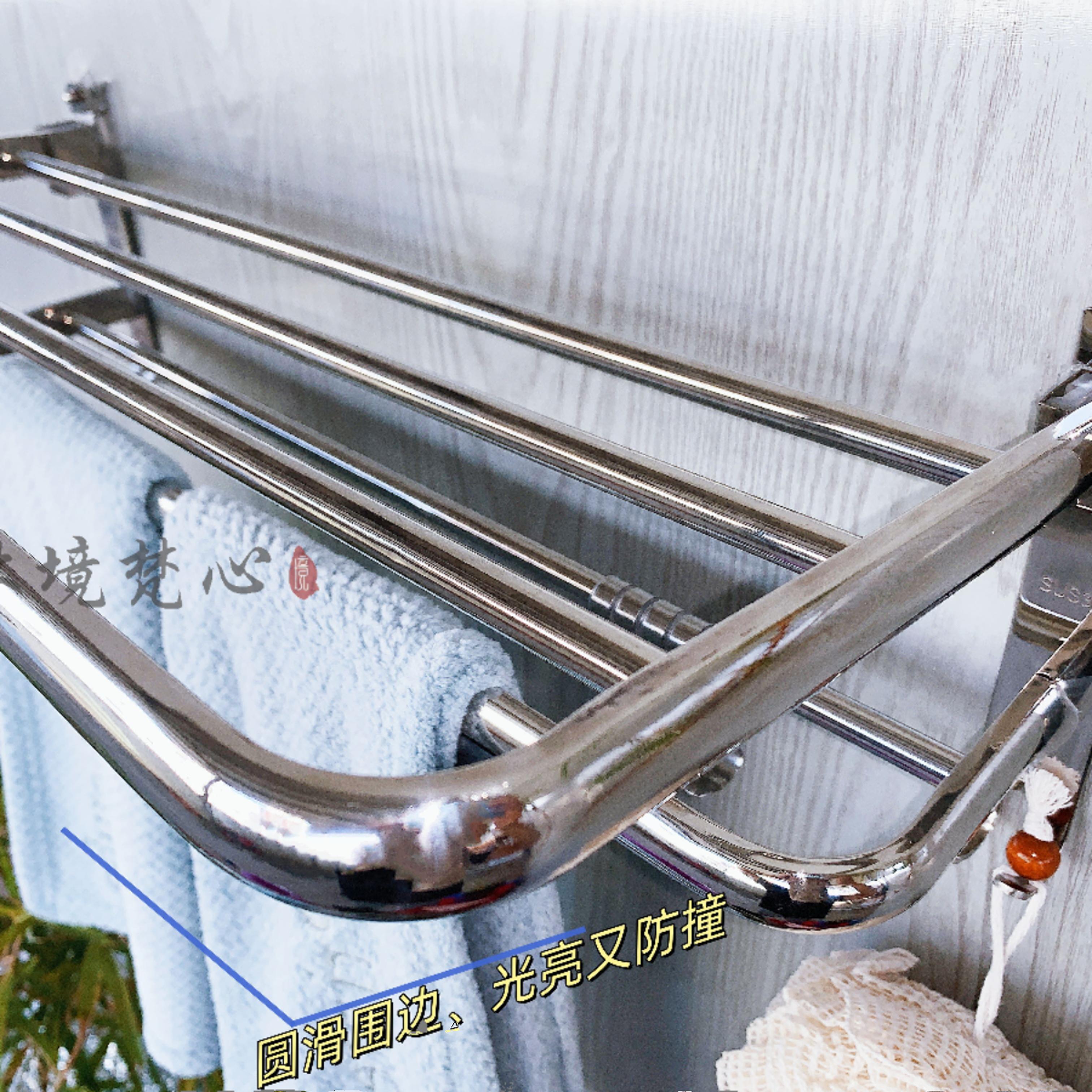 毛巾架304不锈钢卫生间挂架浴室置物架免打孔加厚浴巾架高端挂件