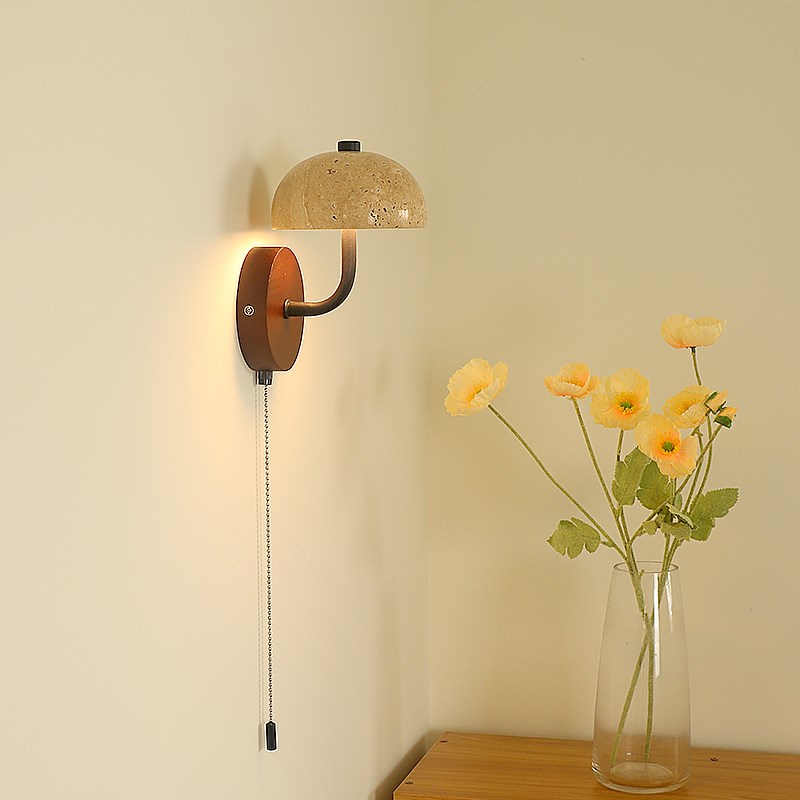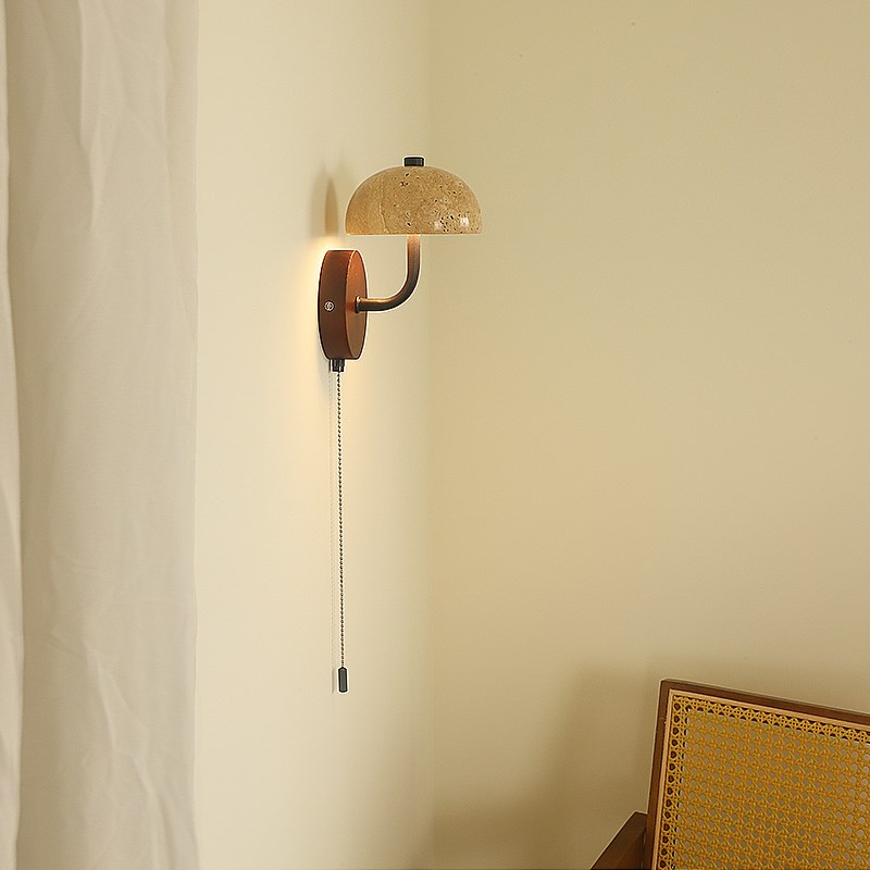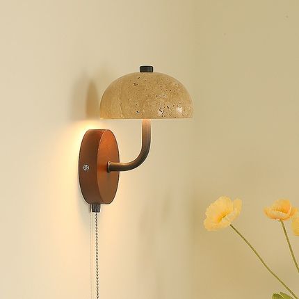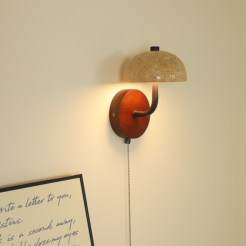 黄洞石壁灯侘寂风卧室床头创意复古实木灯日Q式过道拉线开关灯具