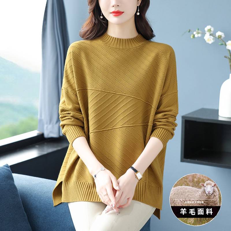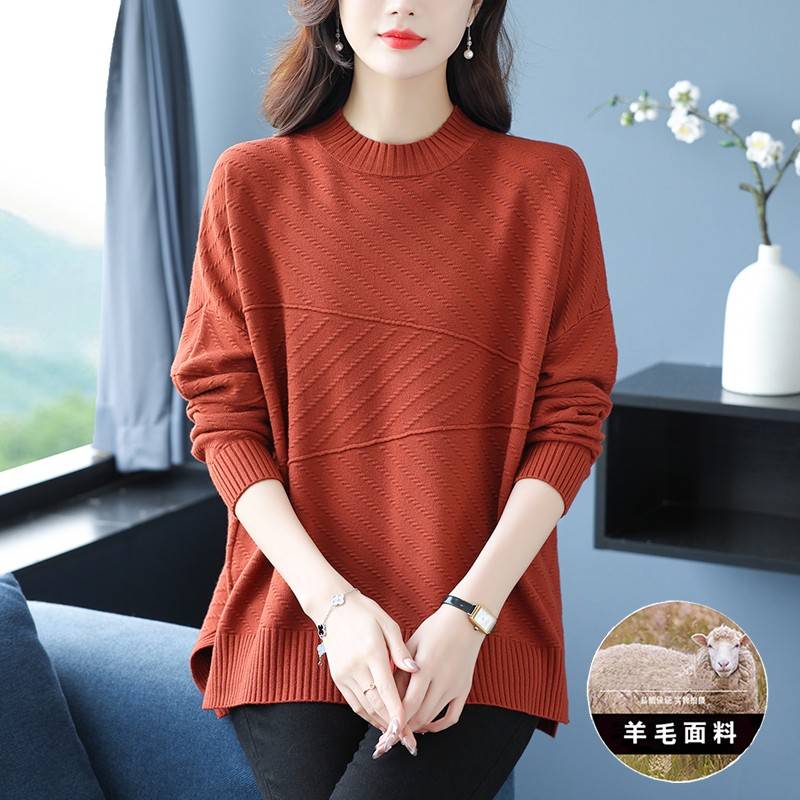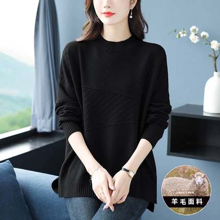 加肥加大码宽松羊毛衫女士毛衣秋冬季胖mm显瘦减龄针织打底衫上衣