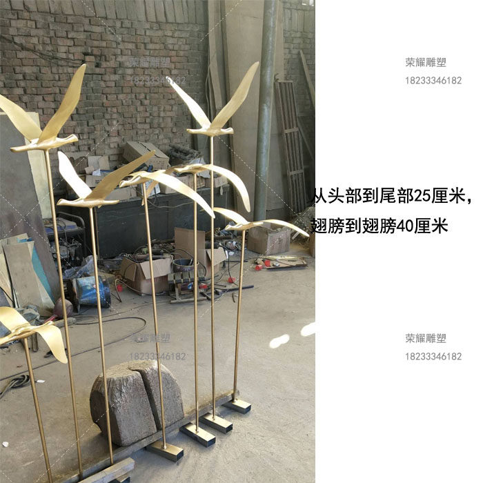 荣耀现货铸铜飞鸟雕塑摆件铜雕抽象小鸟摆件园林碧桂园小区摆件