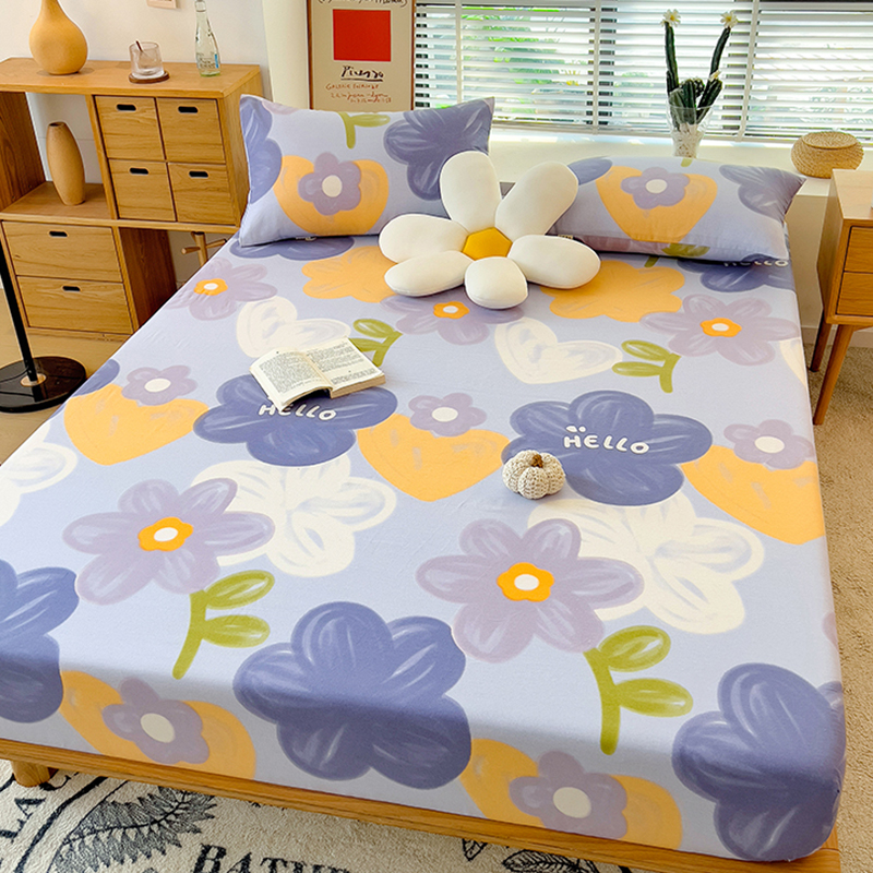 纯棉加厚磨毛床笠单件花花物语全棉床罩床垫保护套防滑全包床单女