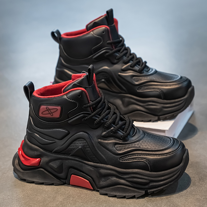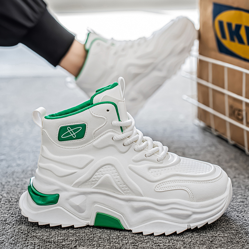 高帮男鞋春季款2025新款白色老爹鞋厚底小白鞋内增高运动鞋马丁靴