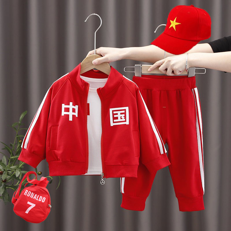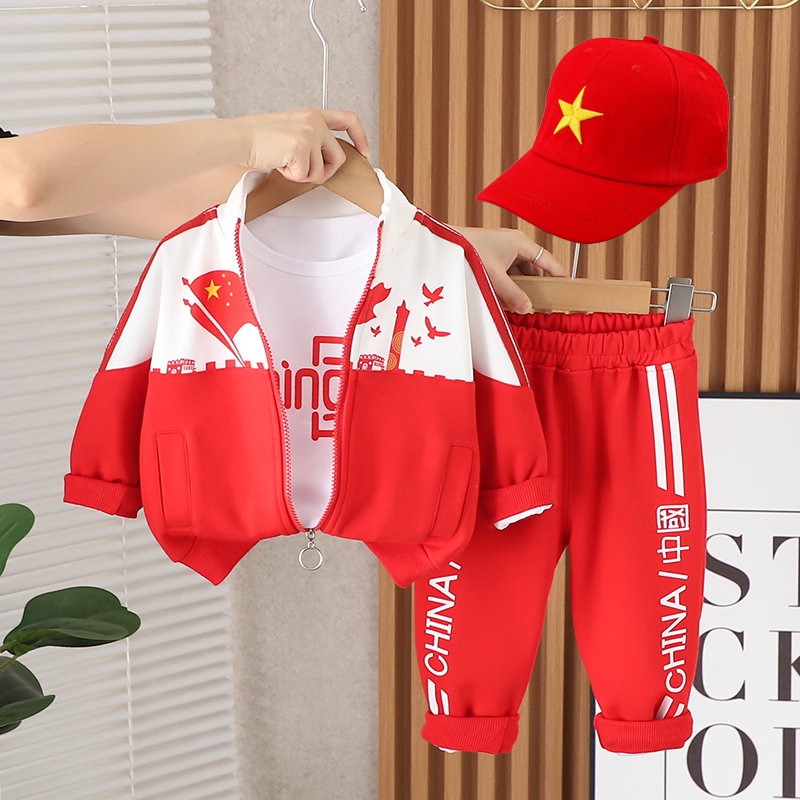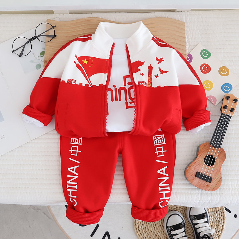 男童春秋装套装女宝宝运动服幼儿园服装儿童中国红三件套小孩校服