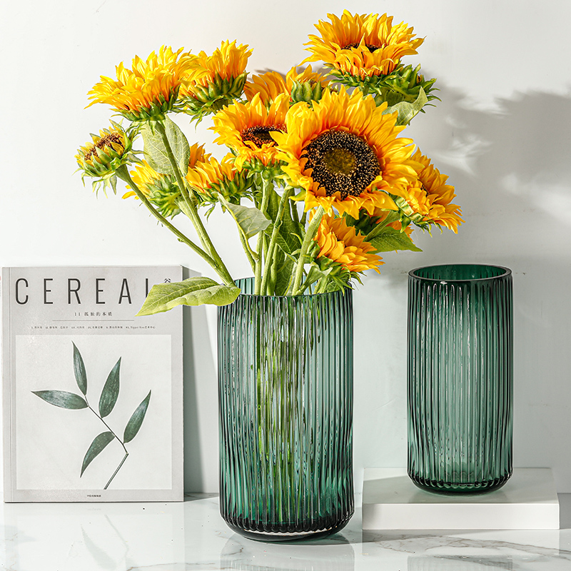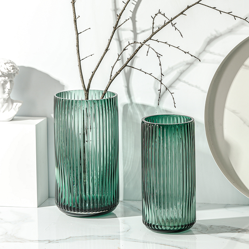 轻奢玻璃花瓶北欧摆件现代简约客厅鲜花插花花器家居竖式条纹直筒
