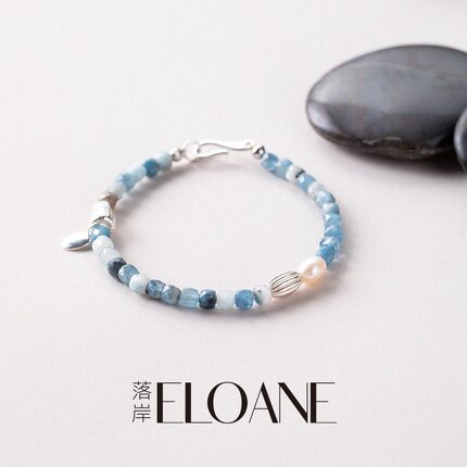 ELOANE GALLERY落岸天然海蓝宝纯银手链补水蓝色宝石珍珠水晶手串