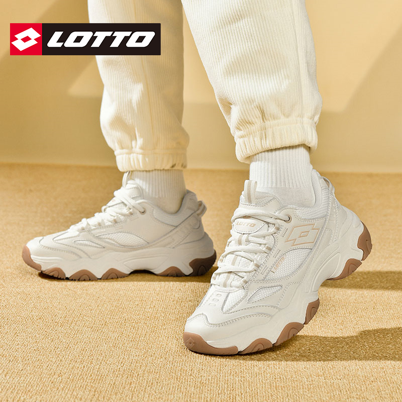 LOTTO乐途女经典黑白熊猫鞋2025秋冬新款复古厚底运动休闲老爹鞋
