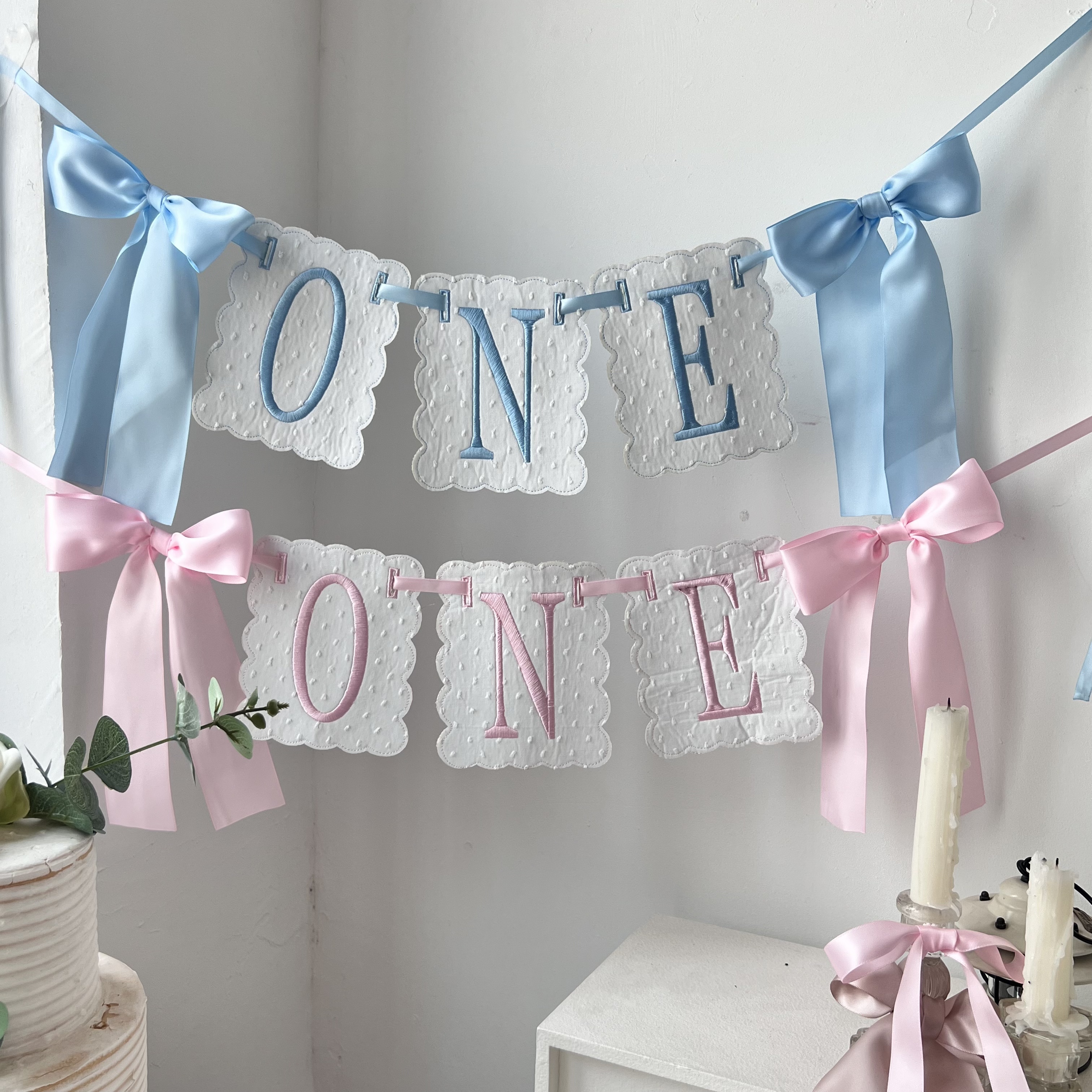 蝴蝶结刺绣one宝宝椅餐椅装饰餐桌装饰拉花周岁生日宴会派对布置