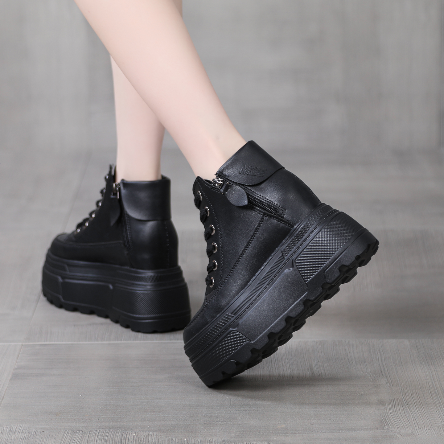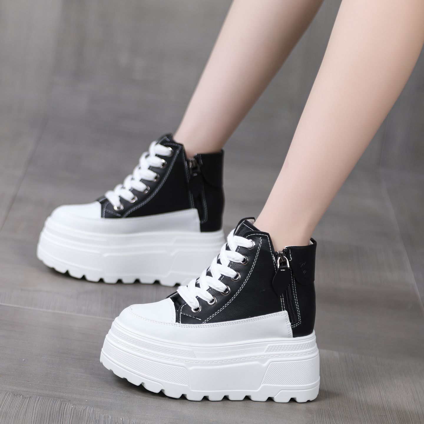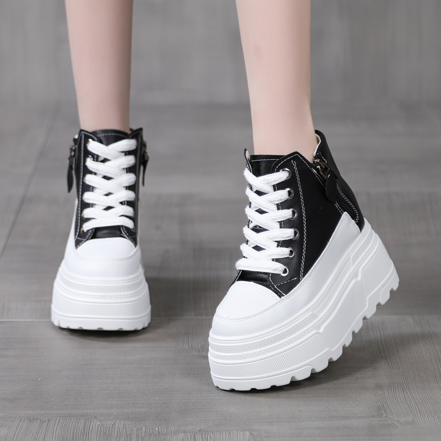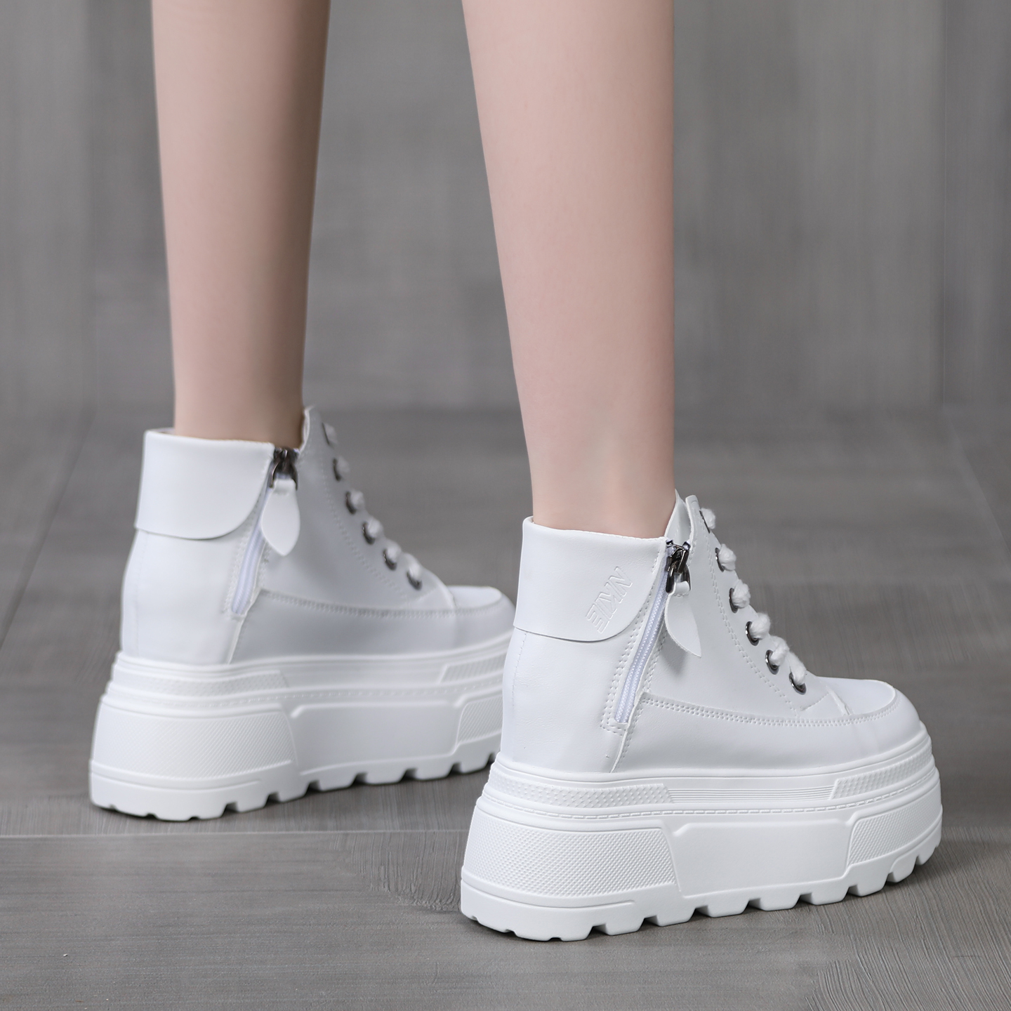 小个子厚底内增高8cm高帮鞋女秋冬侧拉链加绒小白鞋松糕底休闲鞋