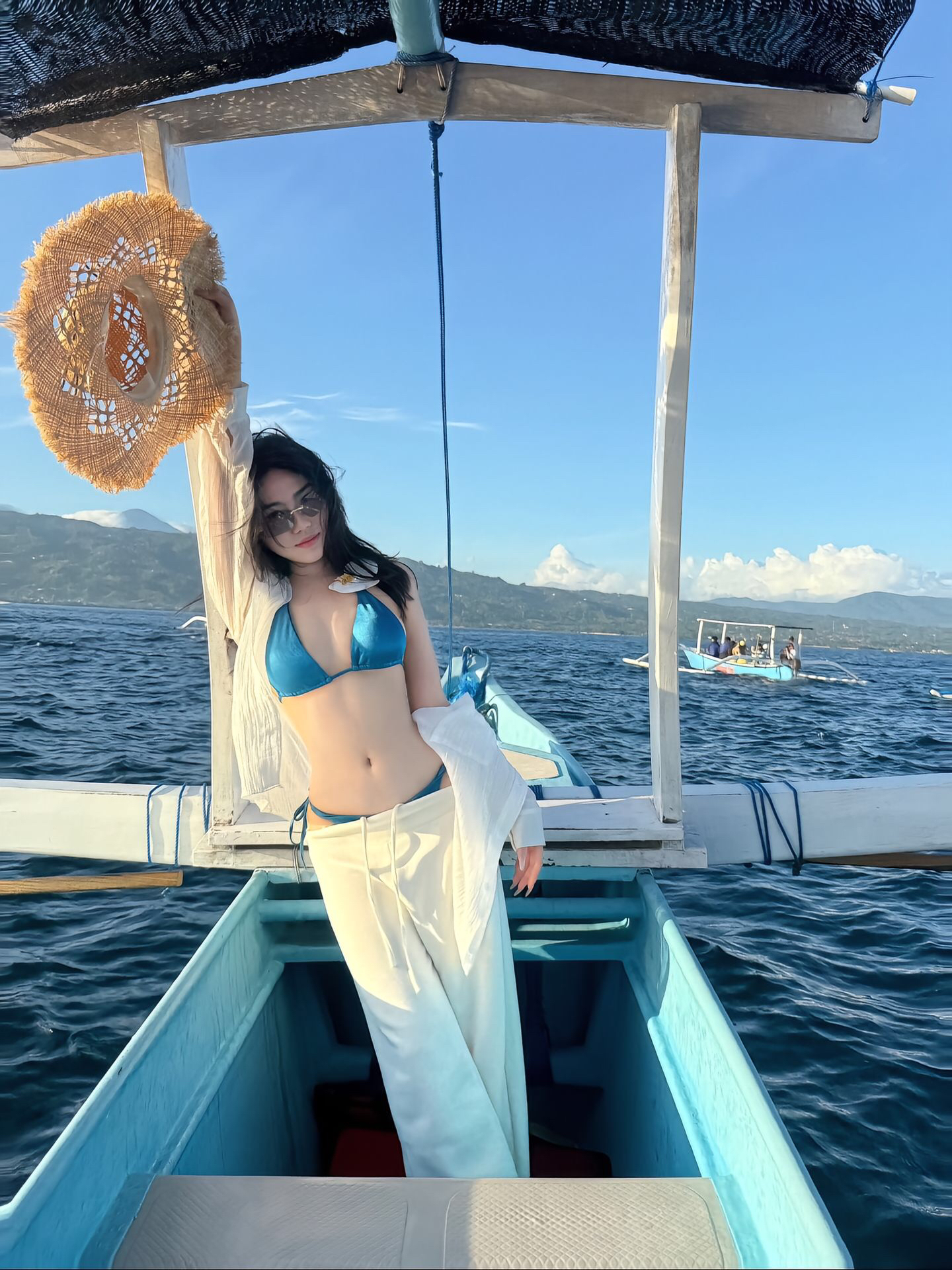 亮面宝蓝显白比基尼泳衣女小胸聚拢抽绳性感辣妹沙滩温泉度假泳装