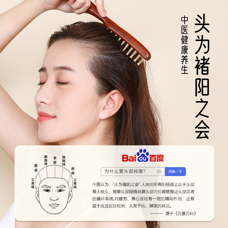 丰林金丝檀按摩梳头部黄铜经络梳子男女洗头皮头发疗梳正品旗舰店