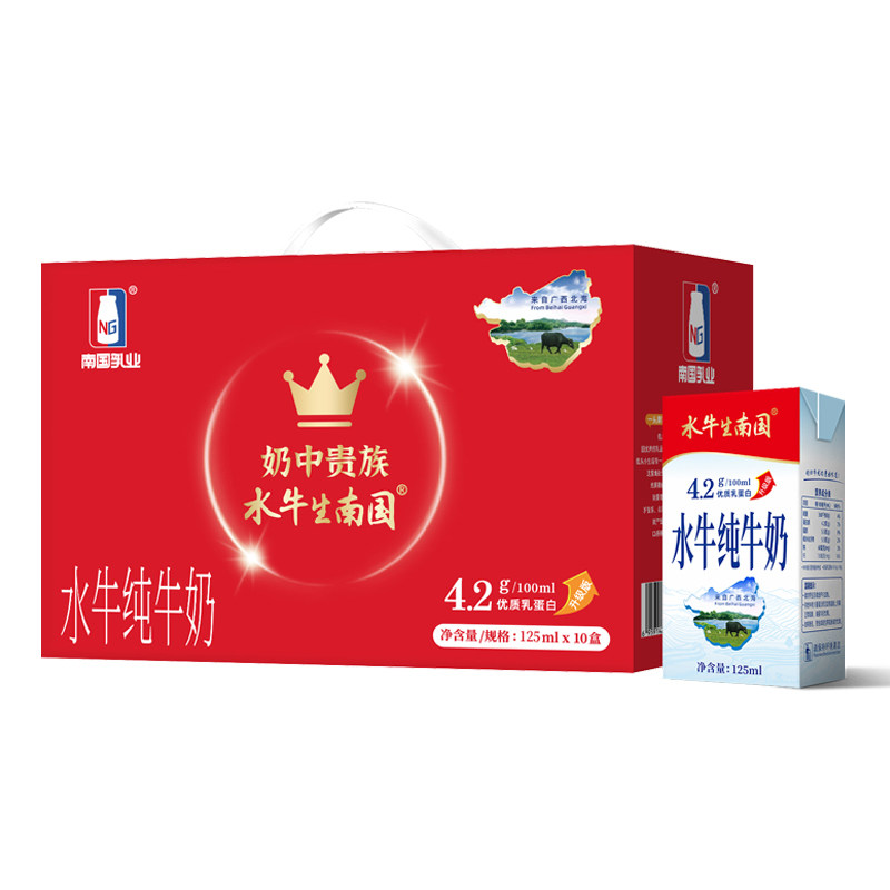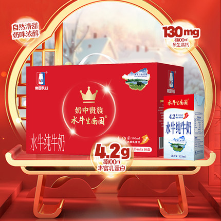 【年货送礼】水牛生南国125ml*10盒纯牛奶 学生早餐A2β-酪蛋白奶