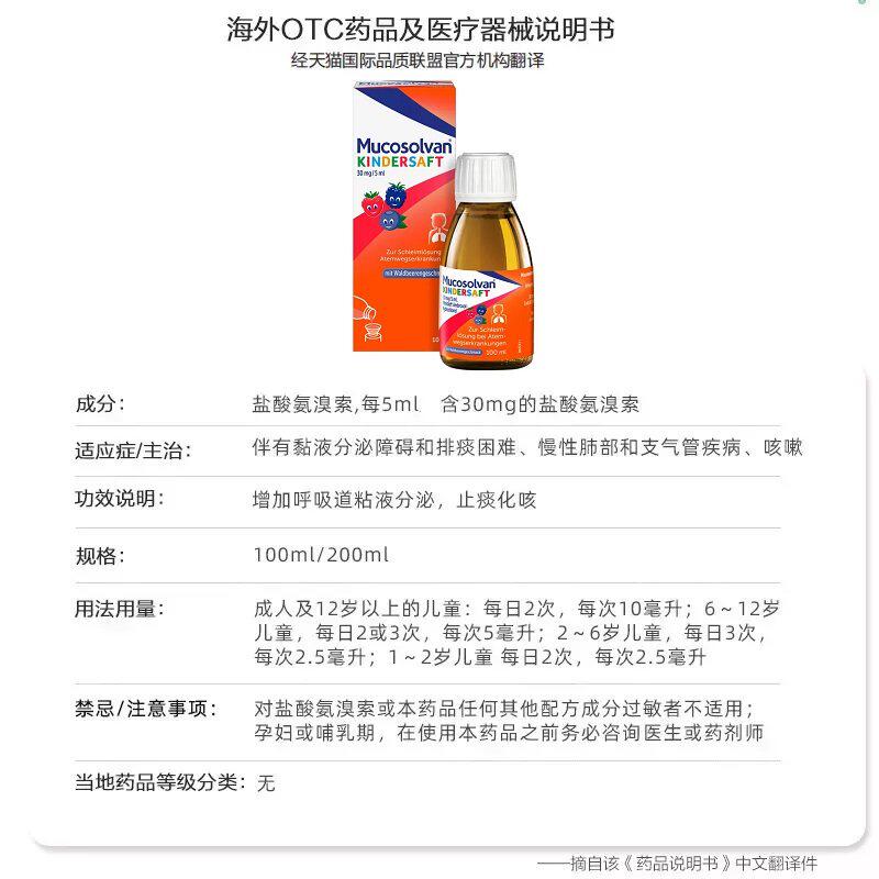 沐舒坦儿童氨溴索止咳嗽化痰祛痰糖浆感冒流感口服液进口