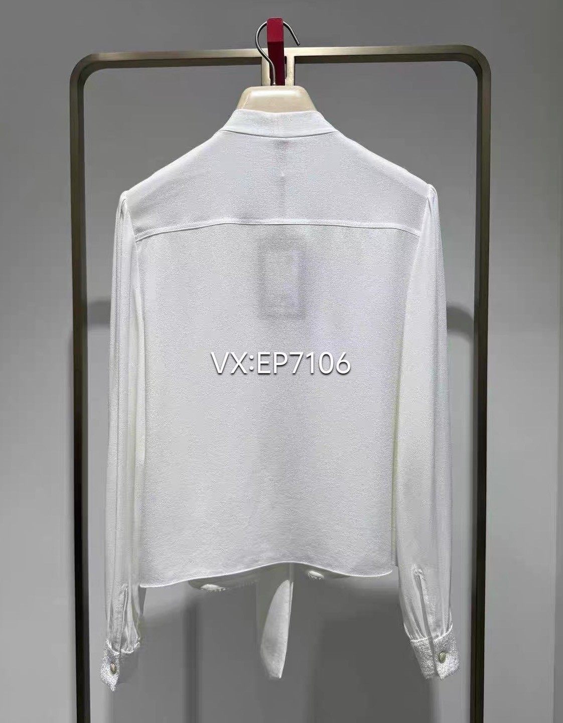 秋冬款高端系列优雅小香风醋酸飘带系带V领衬衫 EPJAT2204B-4999
