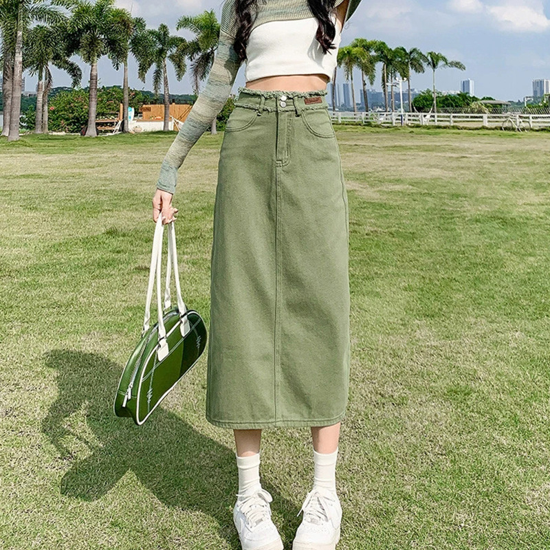 AS510牛仔半身裙纸样女装中长款开叉包臀裙子样板