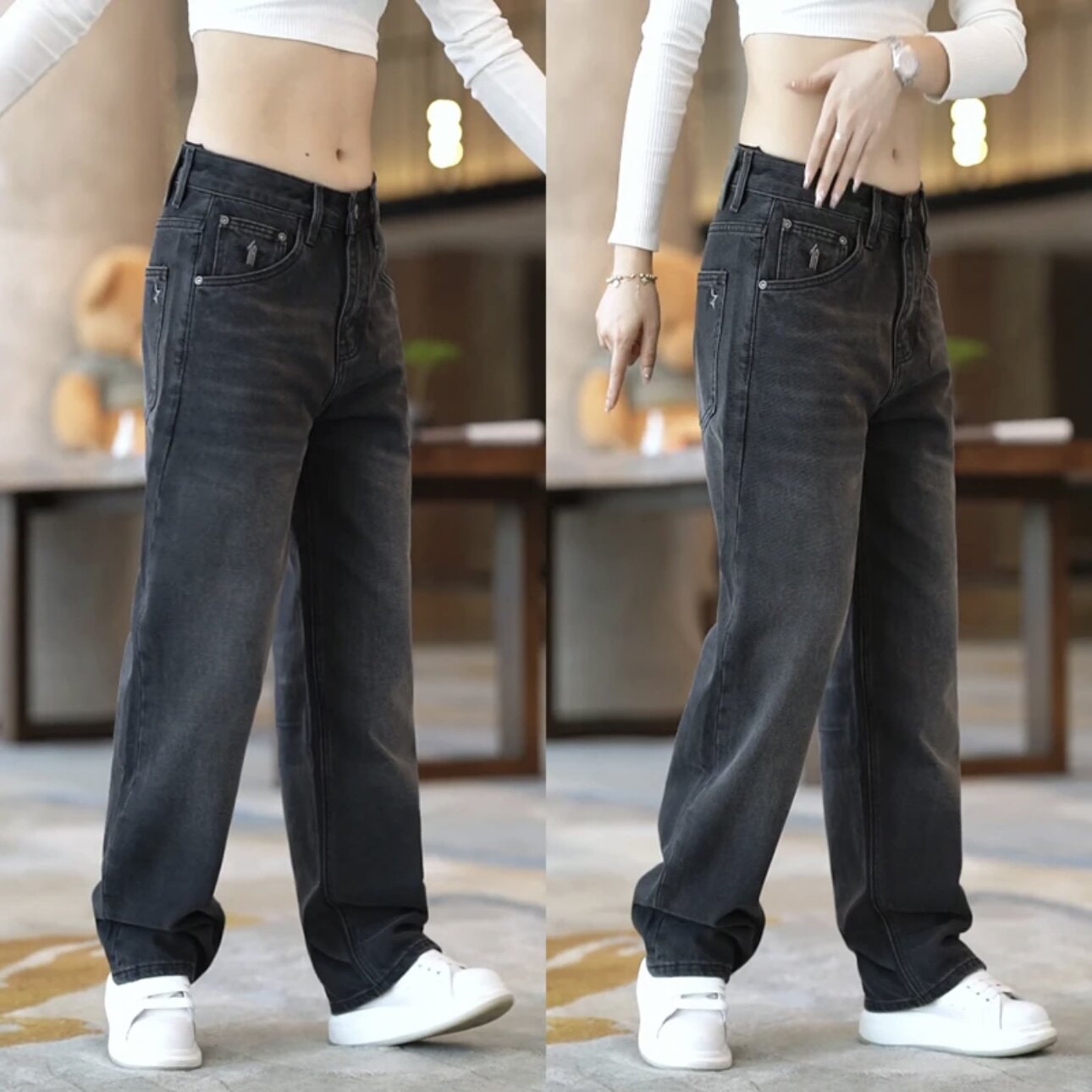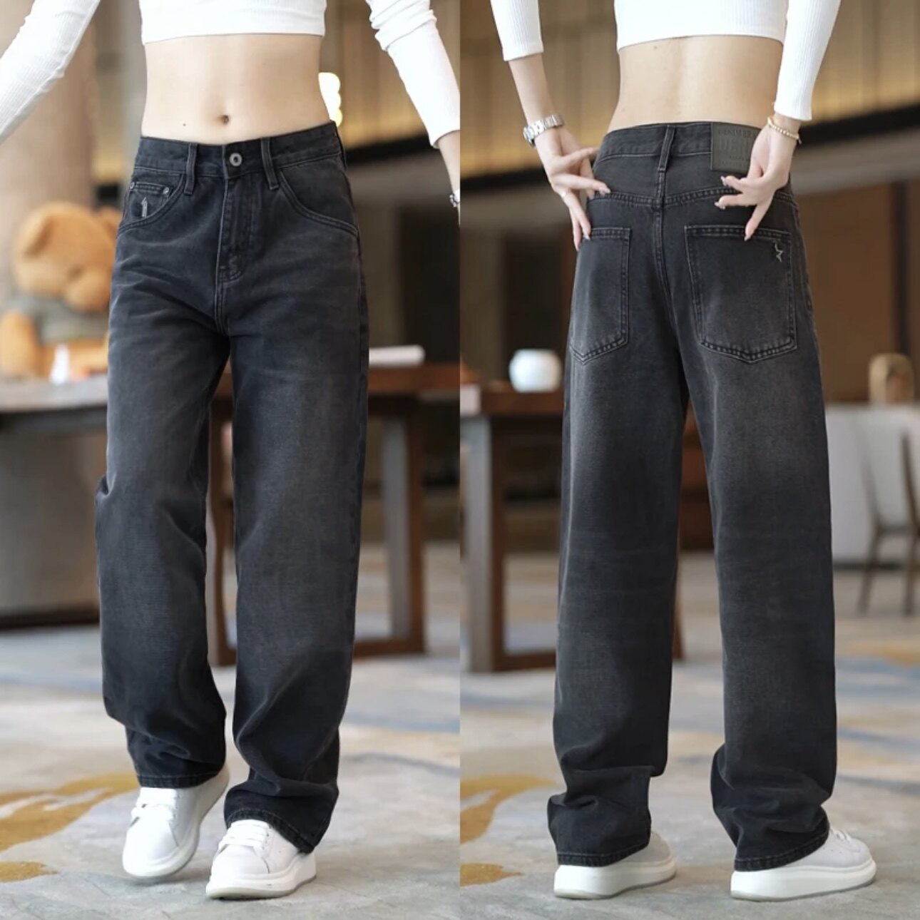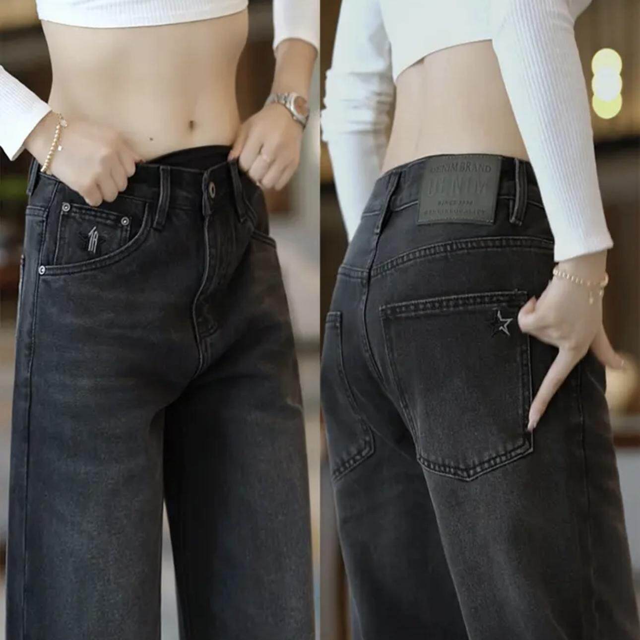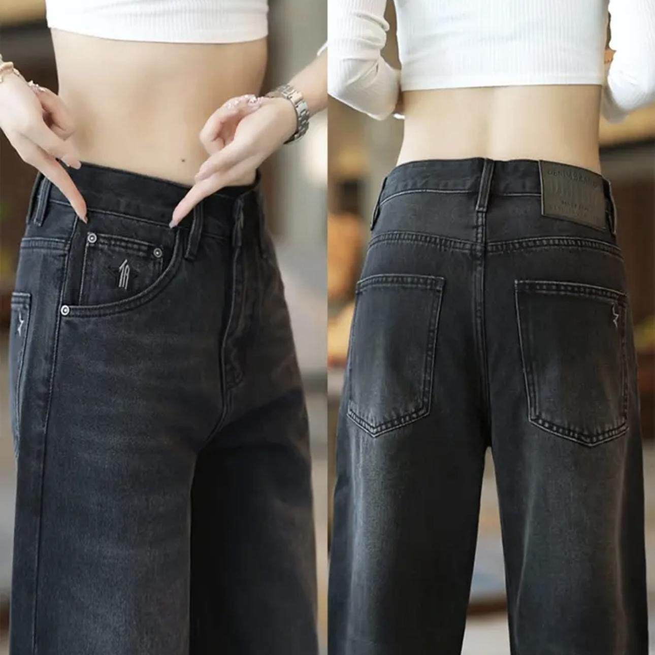 春秋美式刺绣重工水洗阔腿牛仔裤