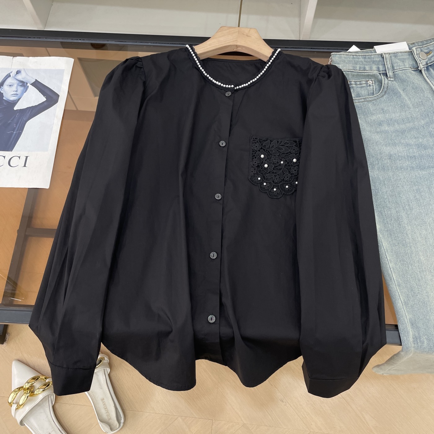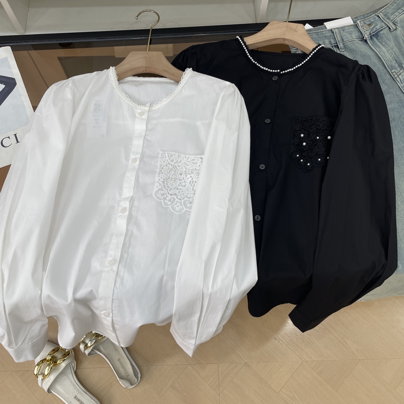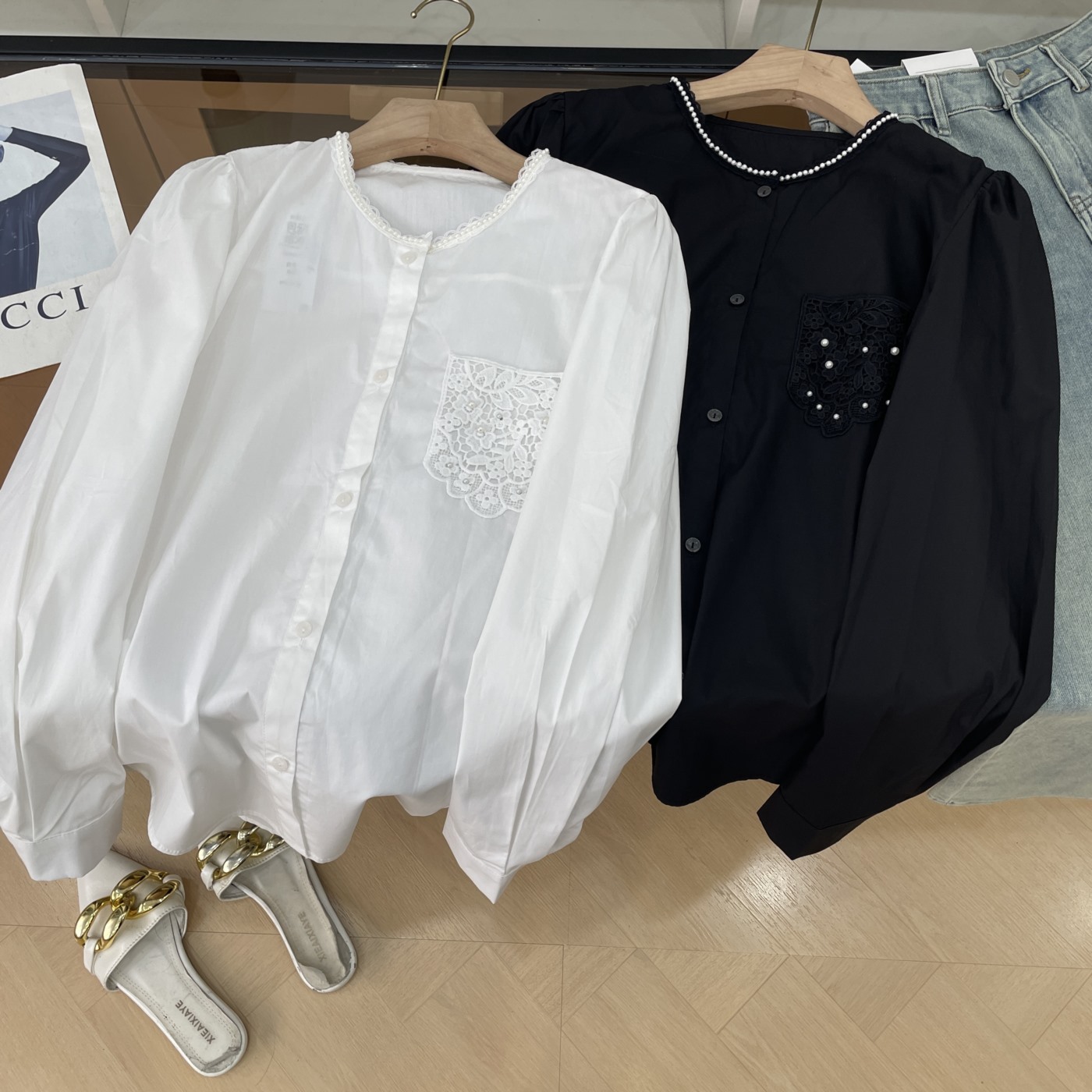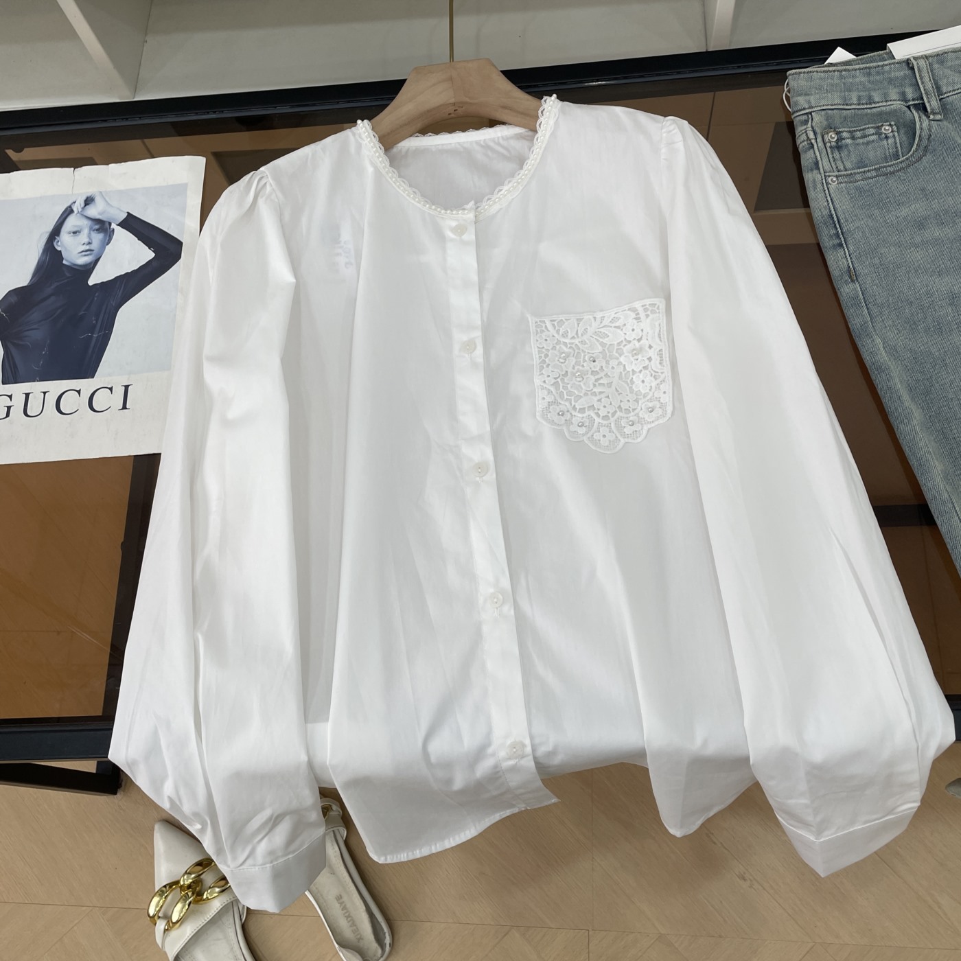 衬衫小众时尚2025长袖微透圆领直筒单排扣上衣女 I#23