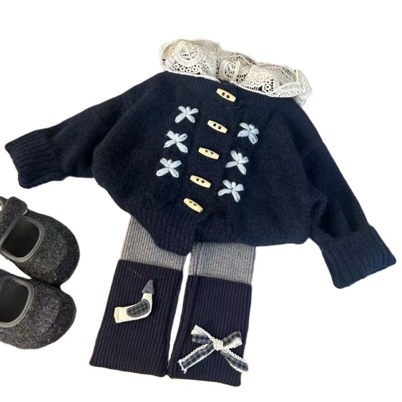 韩版童装2025新款秋季女童蕾丝连帽毛衣开衫堆堆袜打底裤两件套潮