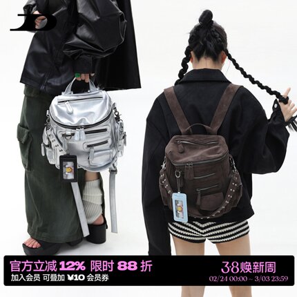 简着 /原创 五色 小号里斯林肯多口袋辣妹铆钉机车Y2K单肩双肩包