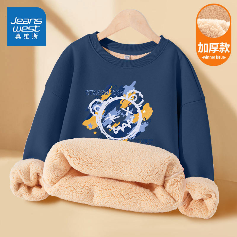 真维斯童装男童卫衣加绒大童秋冬加厚羊羔绒儿童新年冬季保暖冬装