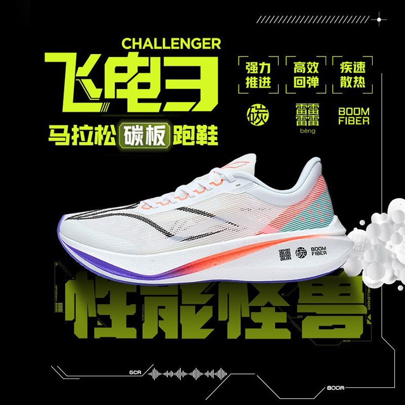 李宁 飞电3challenger竞速跑步鞋 2024新款 碳板运动鞋ARMT037