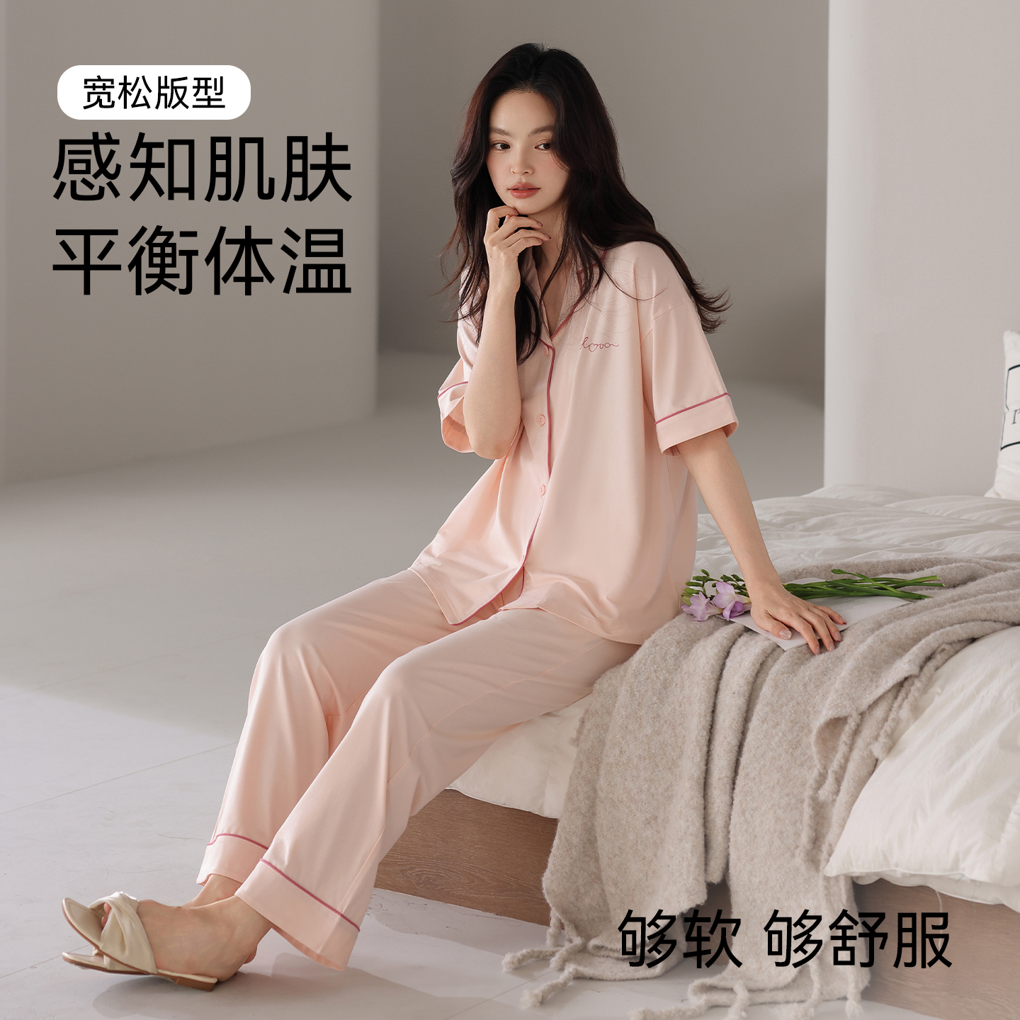 莫代尔睡衣女夏季薄款短袖长裤家居服套装莫代尔棉凉爽大码可外穿