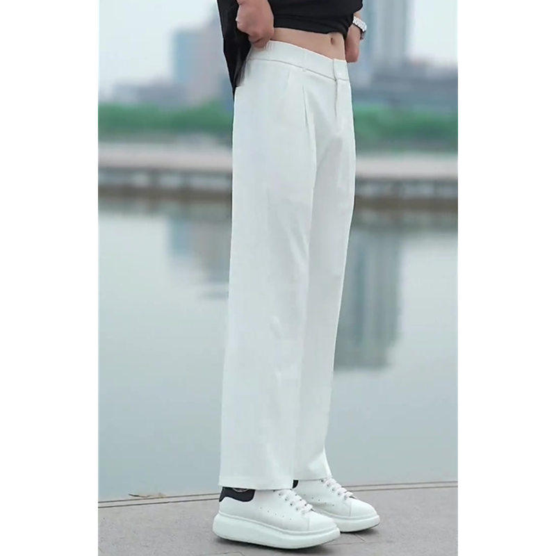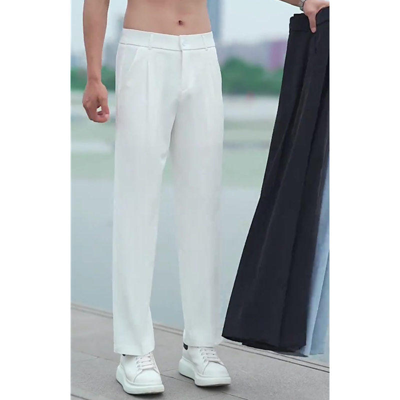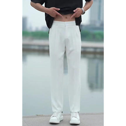 抗皱白色冰丝裤子男夏季韩版潮流西裤垂感高级感凉感正装休闲长裤