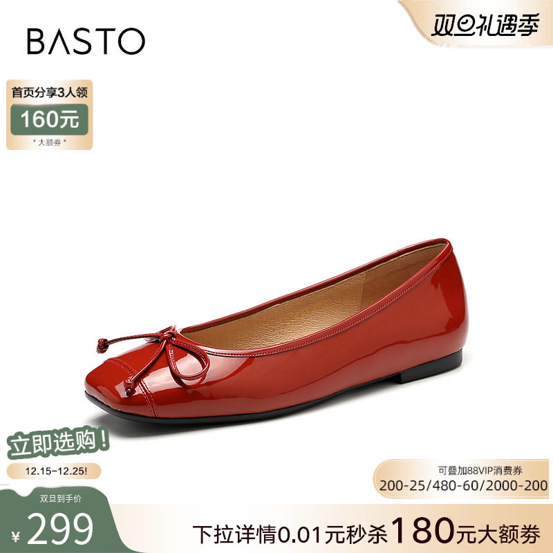 百思图秋季商场新款真皮平底船鞋瓢鞋女浅口豆豆单鞋TIK38AQ3