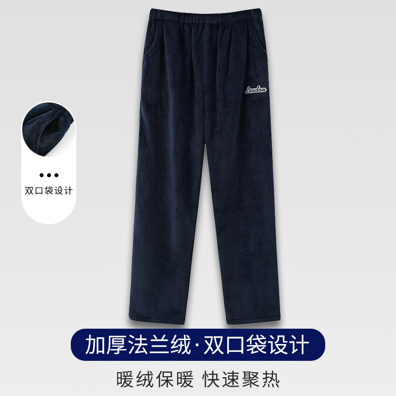 浪莎睡裤男秋冬季珊瑚绒加厚加绒长裤冬天男士可外穿法兰绒家居裤