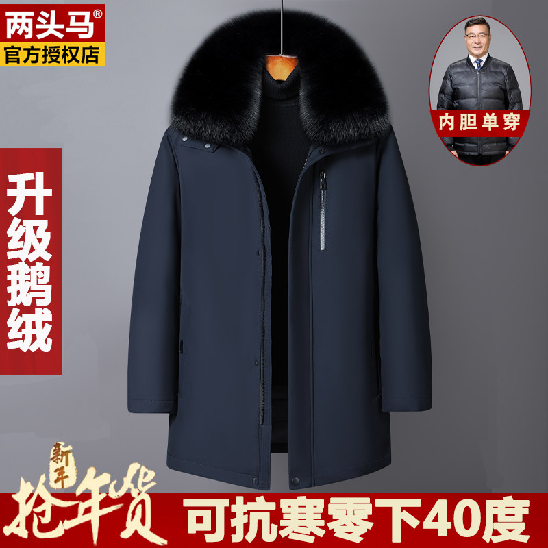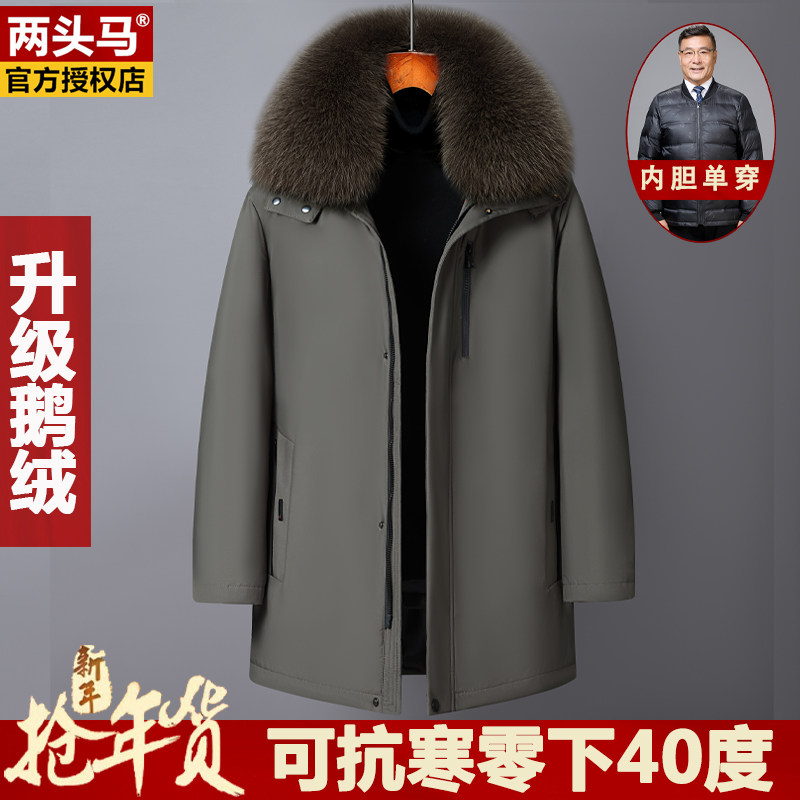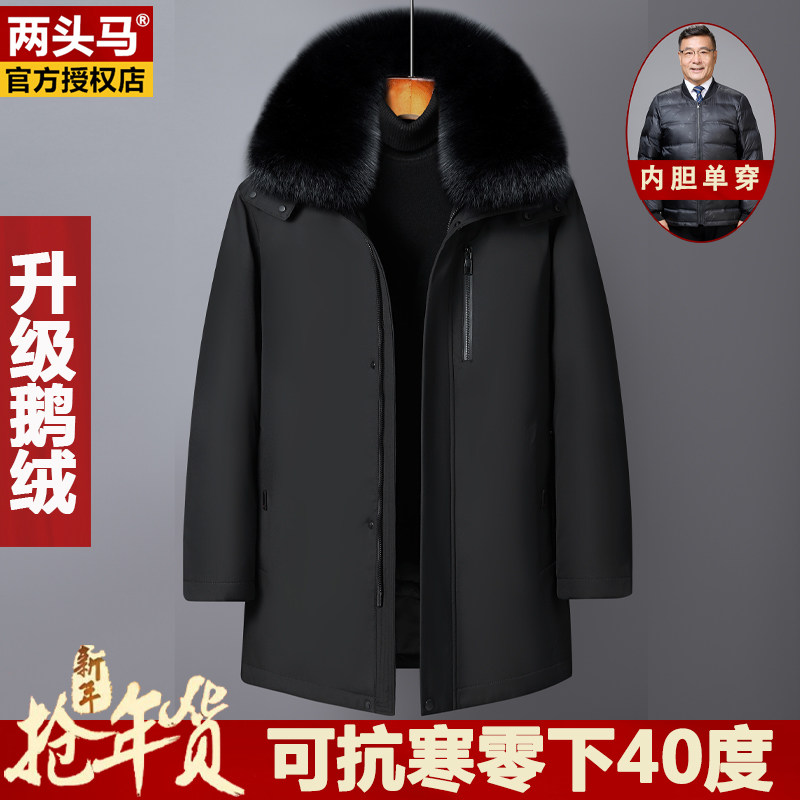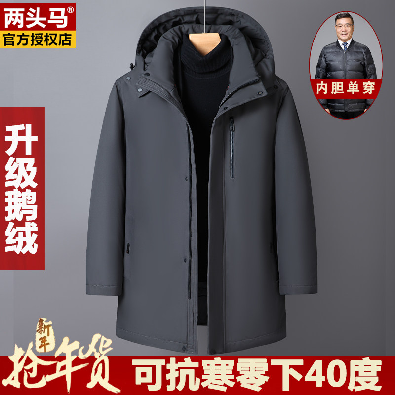 两头马鹅绒爸爸款羽绒服男士中老年加厚中长款拆内胆防寒冬装外套