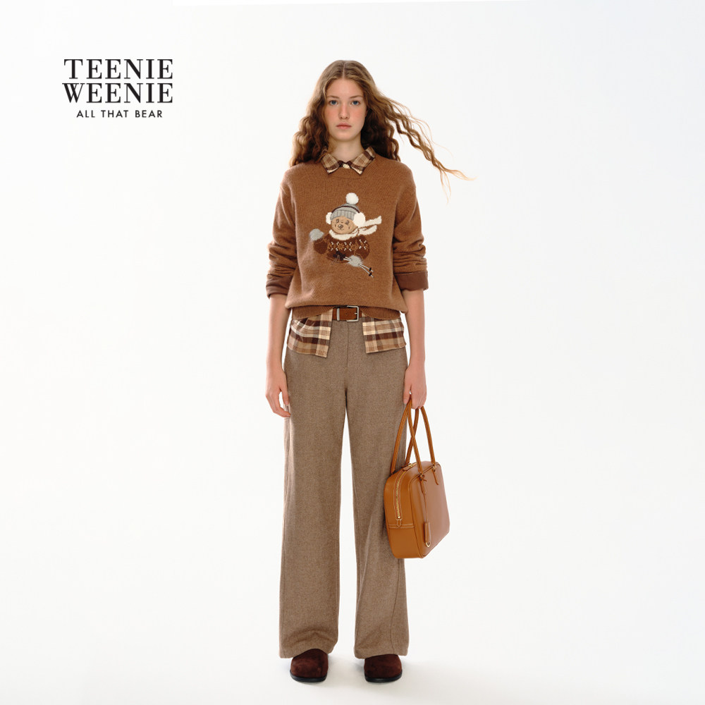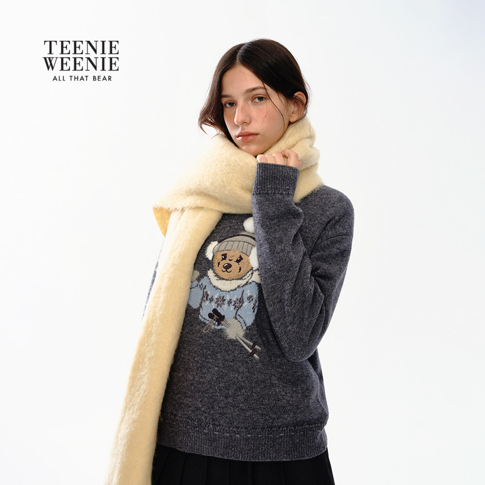 TeenieWeenie小熊女装毛针织衫冬季柔软舒适提花圆领套头毛衣上装