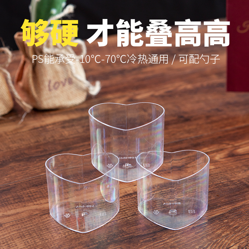 70ML心形慕斯杯果冻杯甜品台食品级一次性杯子加厚创意奶冻布丁杯